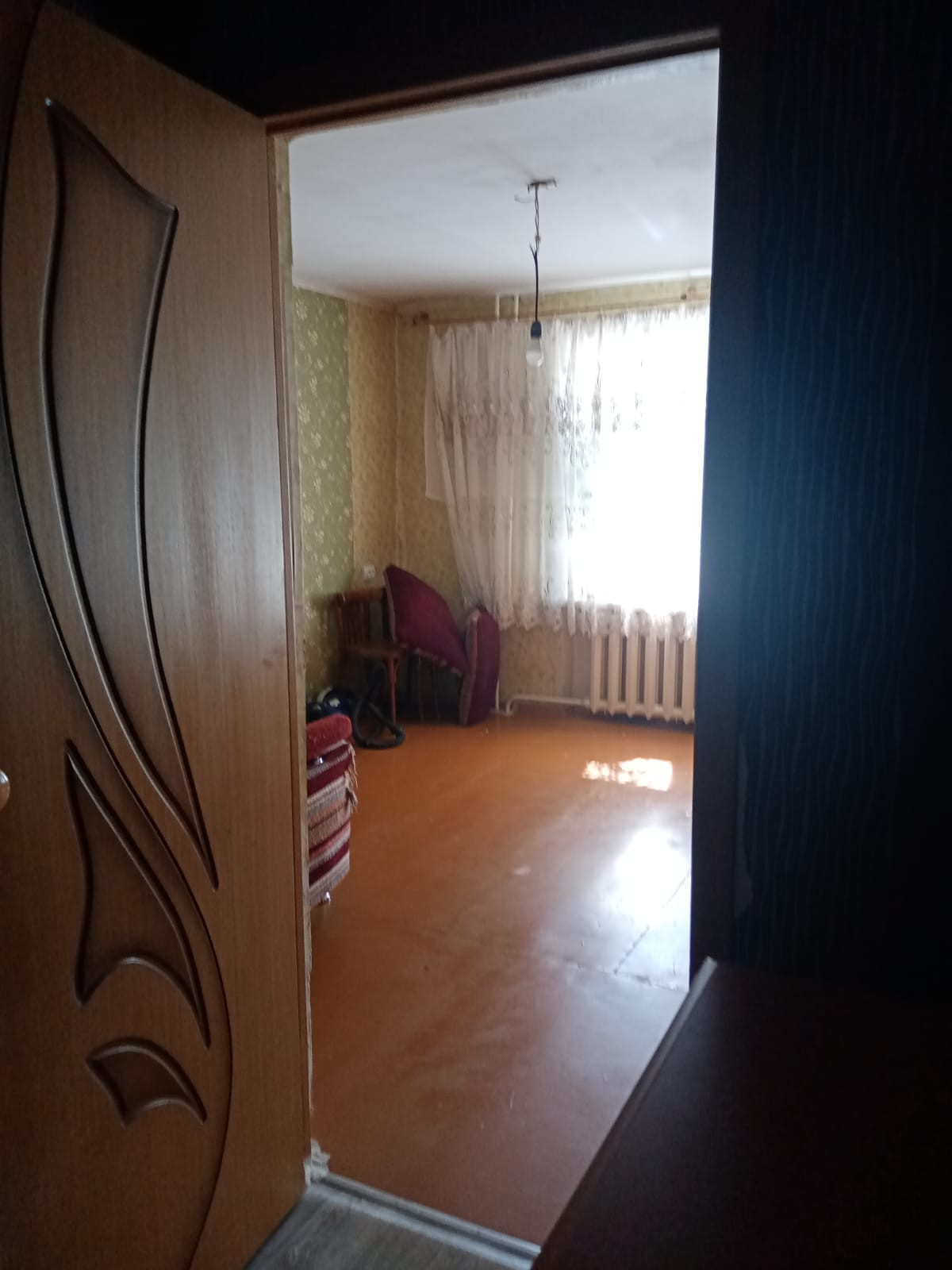 Добротная металлическая входная дверь. В прихожей угловой шкаф (остается). Окна - деревянные стеклопакеты. На полу в коридоре и зале линолеум под ламинат. На кухне на полу линолеум с красивым орнаментом.