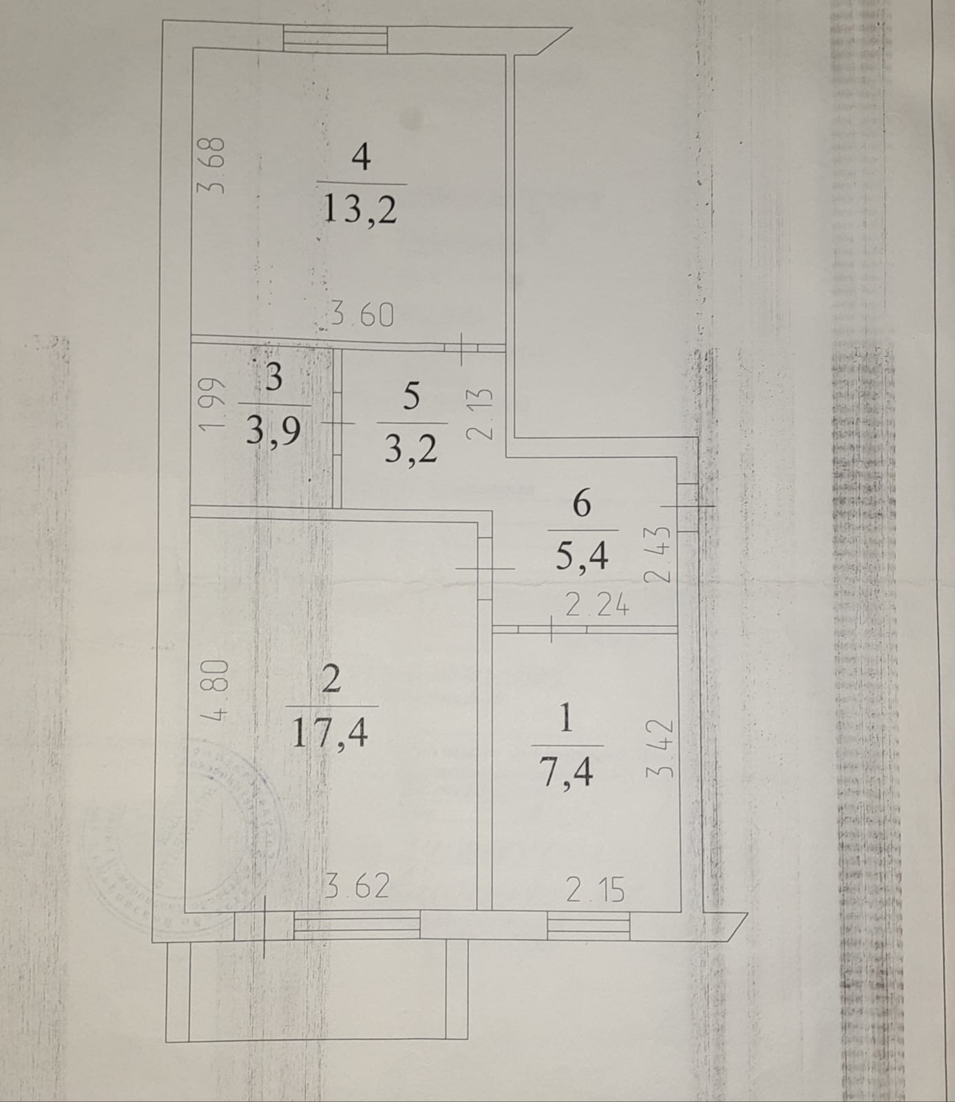 Общая площадь 50.5 м2
