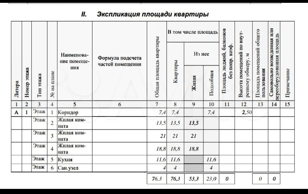 Общая площадь 76.3 м2