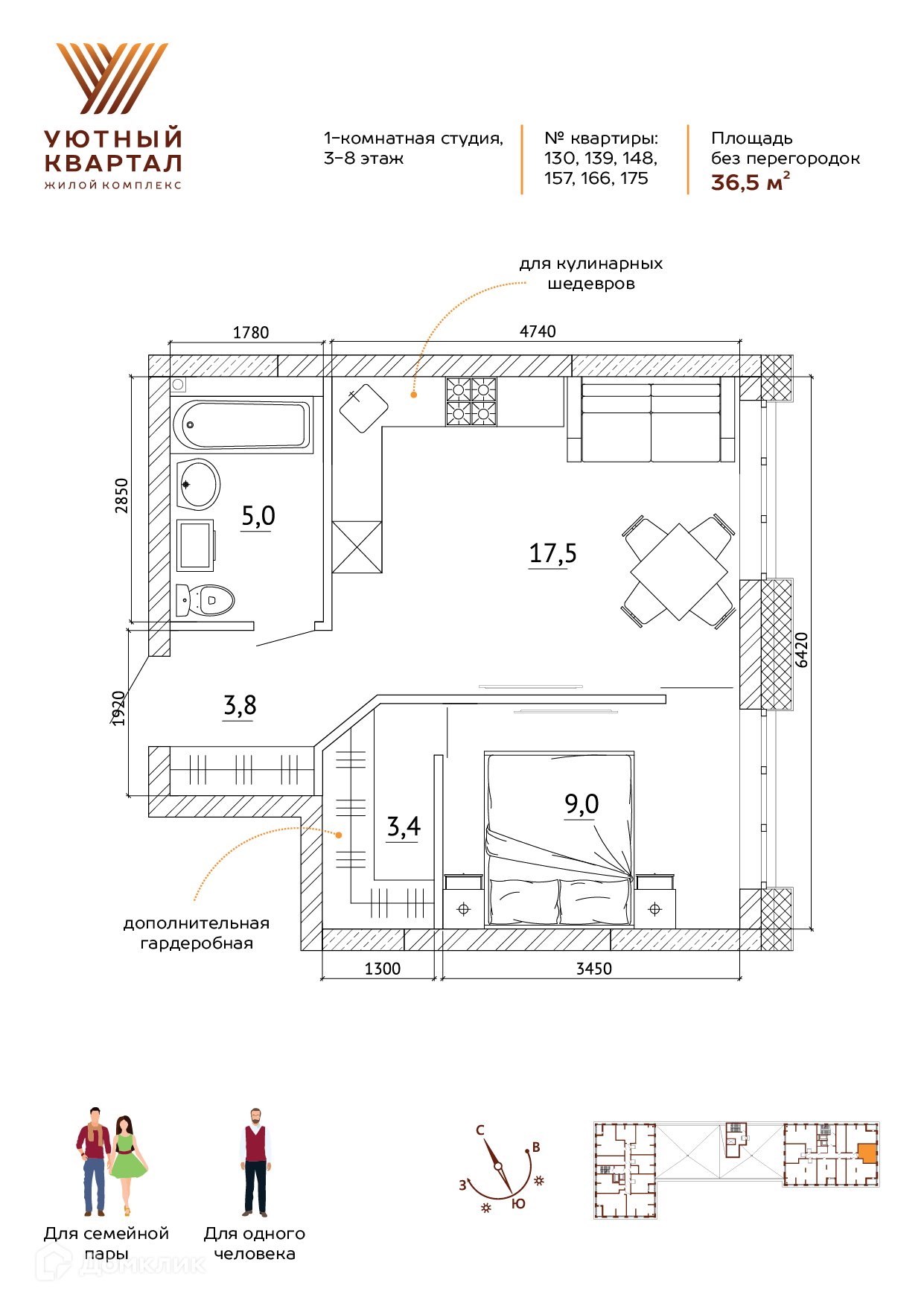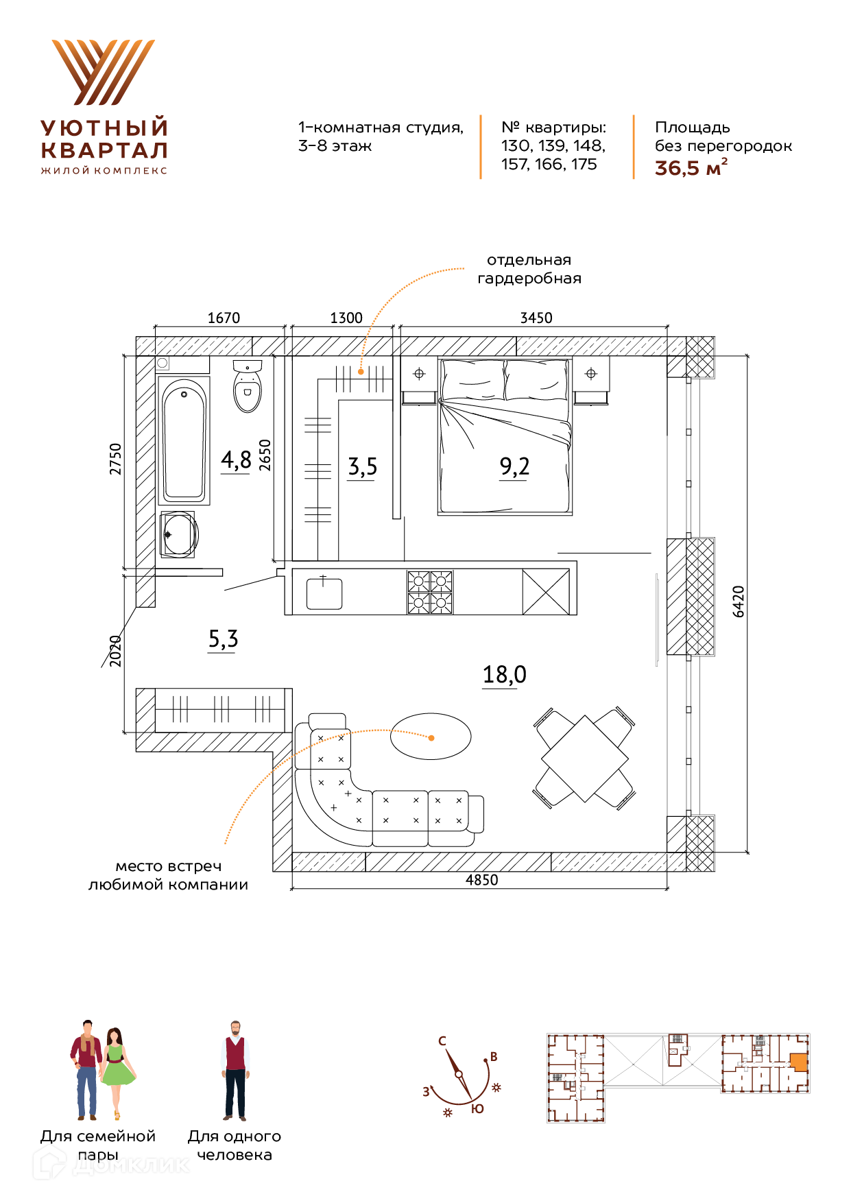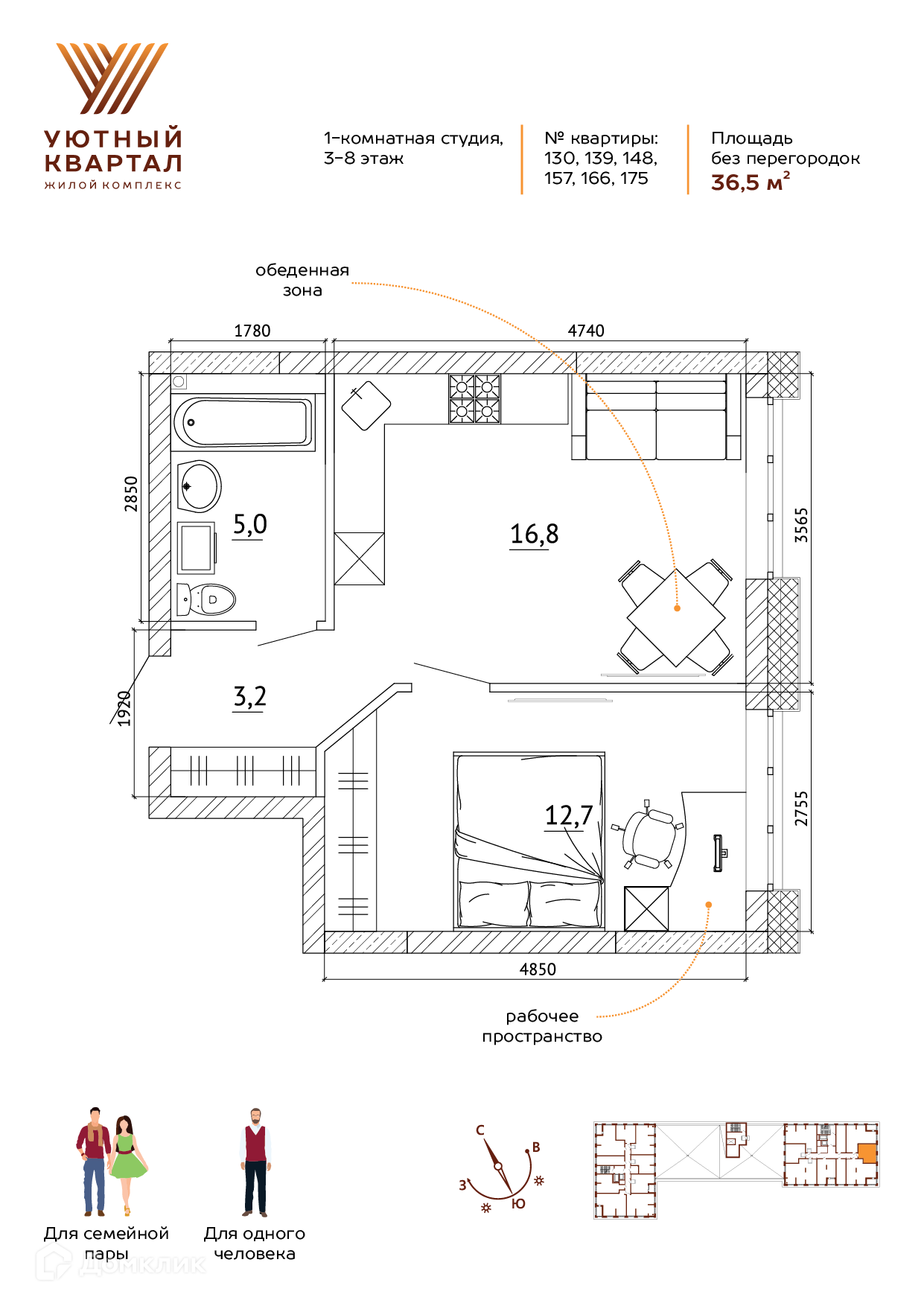 Общая площадь 36.5 м2