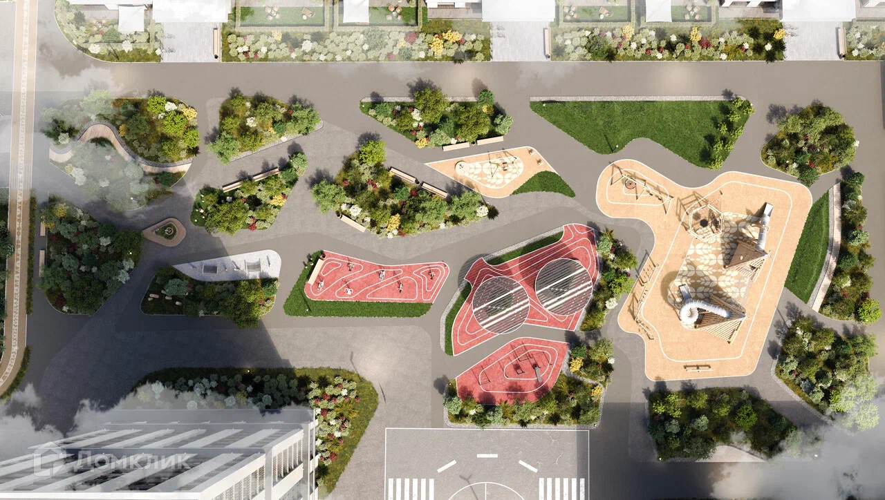 - Современные детские площадки на разные возраста, спортивные объекты