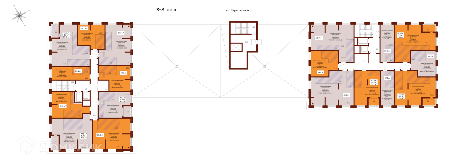 - Возможность объединения соседних квартир и приобретения с разными видами ремонтов