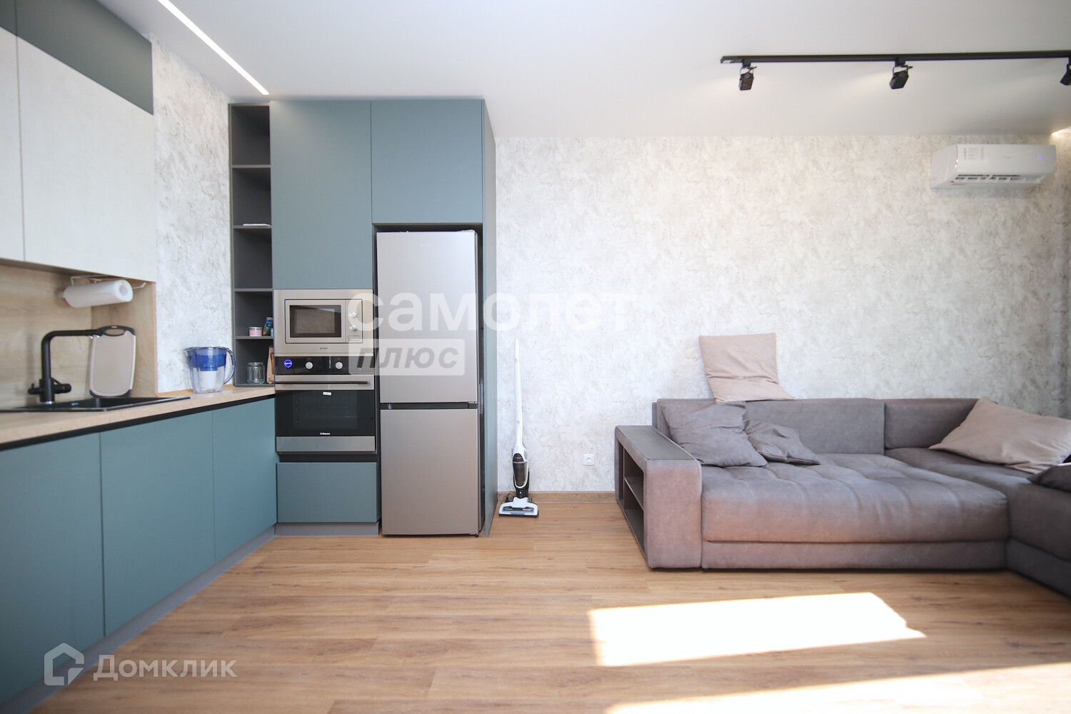 В квартире выполнен современный качественный ремонт. Установлен кондиционер. Напольное покрытие - ПВХ плитка. Настенное покрытие - обои. В ванной комнате, санузле и коридоре - керамическая плитка. Натяжные потолки. Лоджия. Межкомнатные двери под цвет дерево дуб. Отличный кухонный гарнитур со встроенной техникой (варочная панель, духовой шкаф, вытяжка, посудомоечная машина). В коридоре вместительный шкаф.