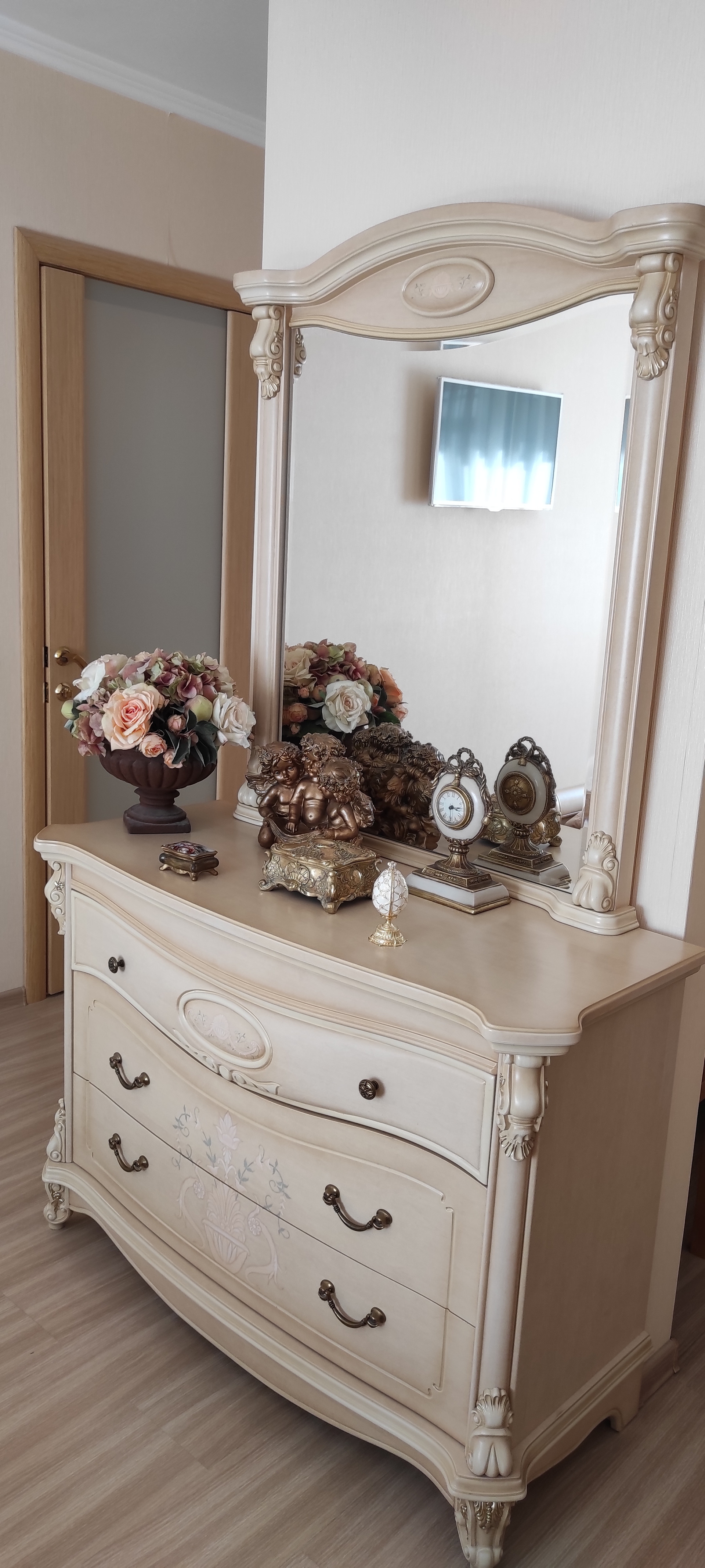 В квартире останется вместительный встроенный шкаф в коридоре, спальный гарнитур, мебель в ванной комнате.