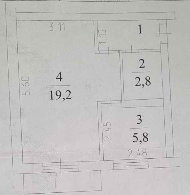 Жилая площадь 19.2 м2