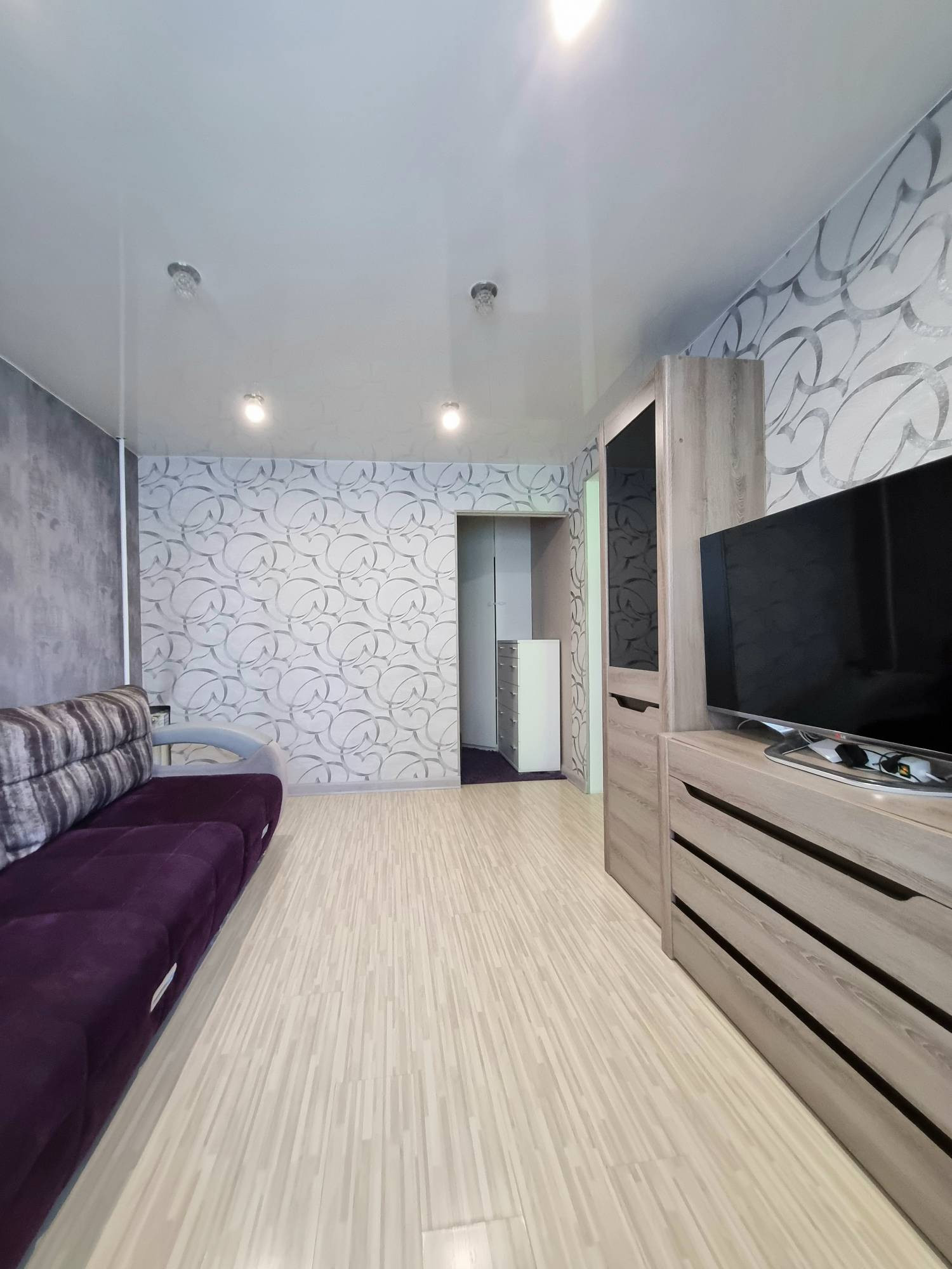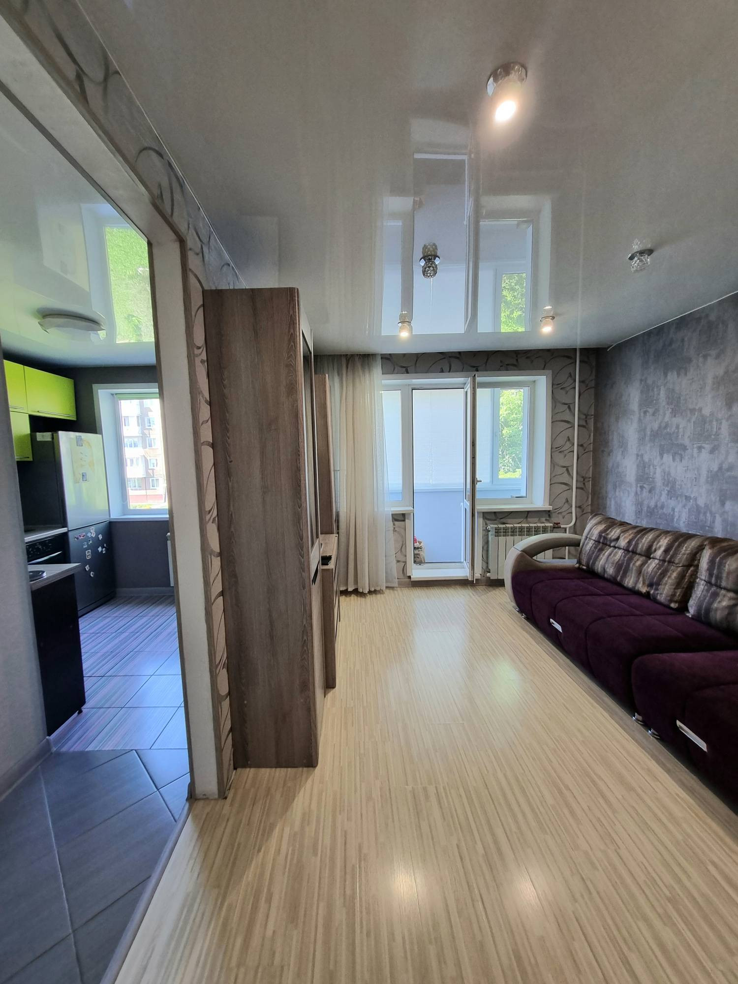 В квартире выполнен качественный современный ремонт, разводка отопительной системы медная, заменены все стояки, радиаторы биметалл, в коридоре и на кухне теплый пол. В комнате есть гипсокартонная перегородка, которая отделяет спальное место для двоих.