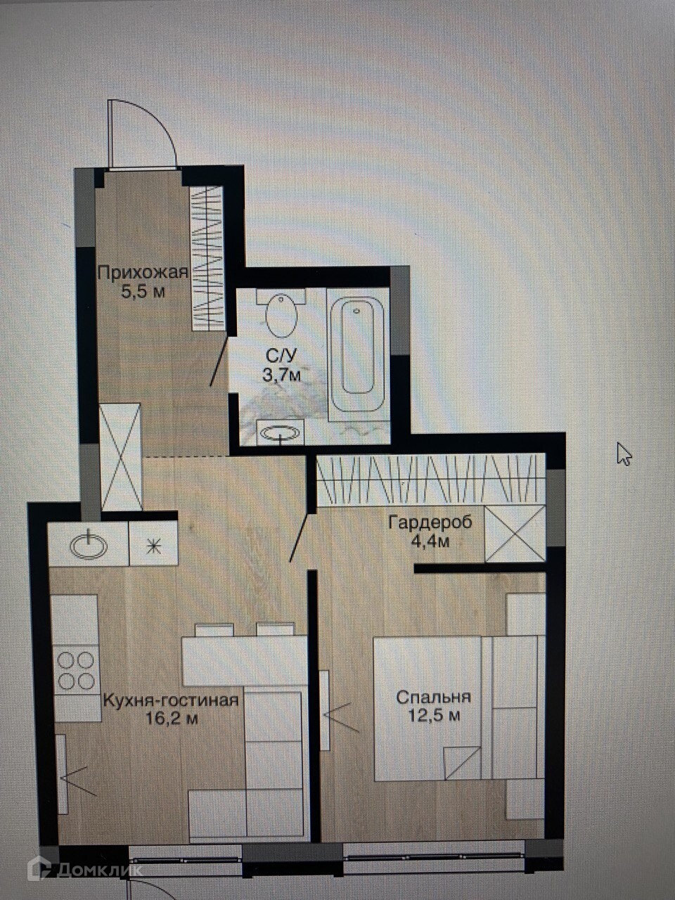 Общая площадь 39.9 м2