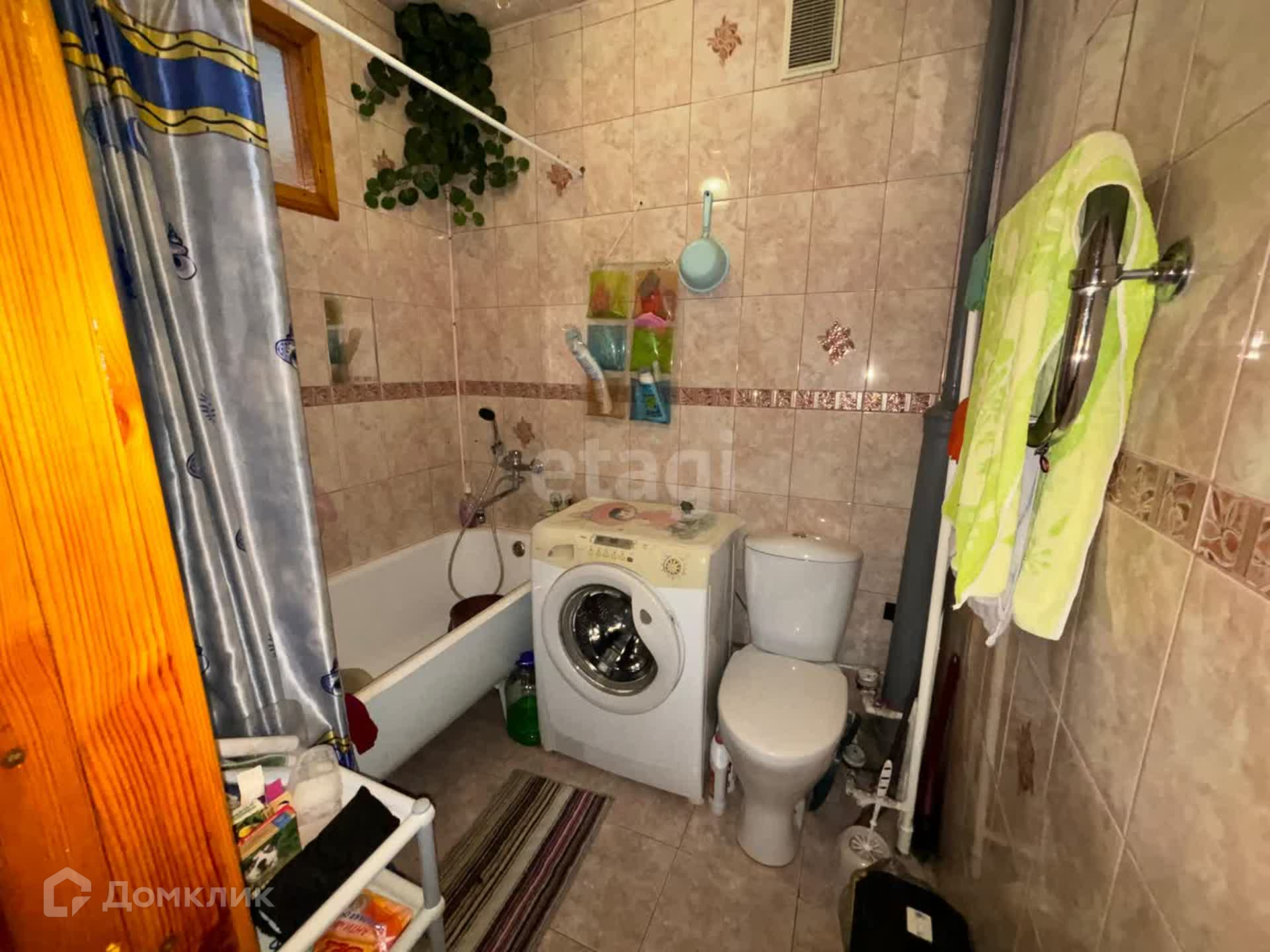 В ванной комнате от потолка до пола уложена плитка.