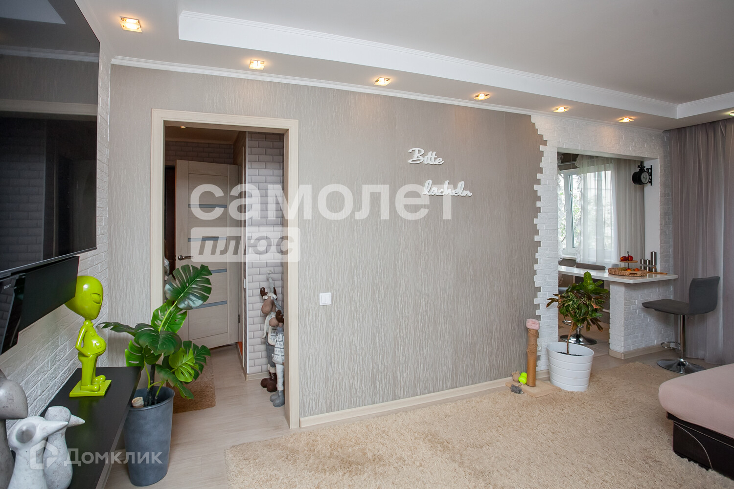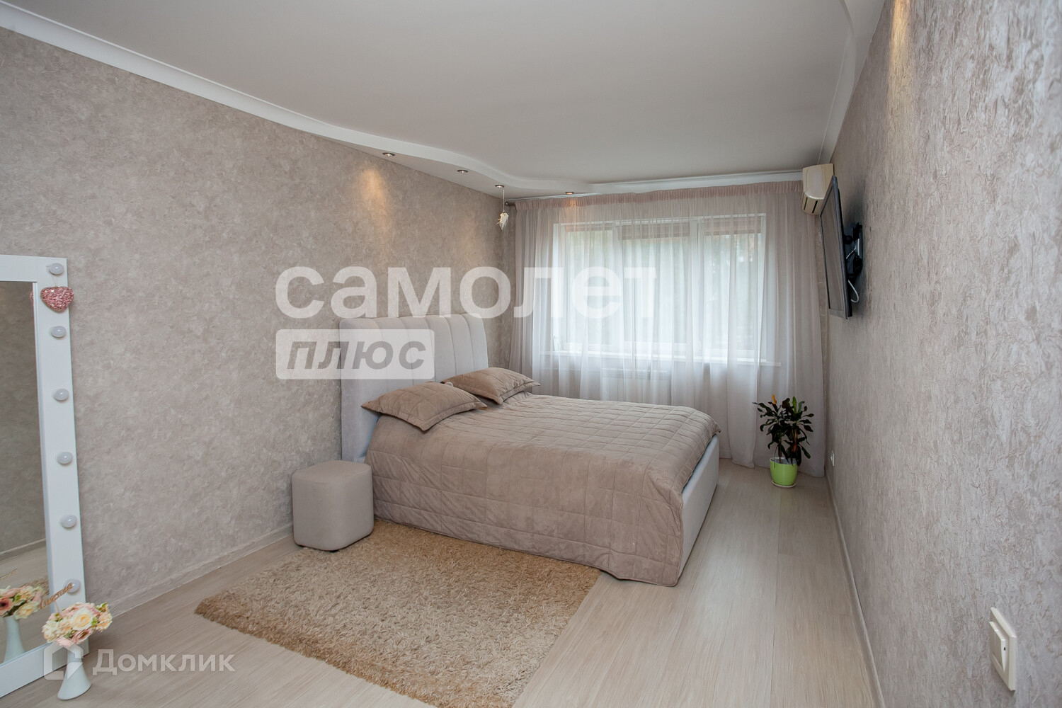 Квартира в хорошем состоянии, выровнены стены и пол, многоуровневый потолок с точечным освещением, заменены коммуникации, радиаторы, в спальне установлен кондиционер, полностью готова к проживанию, не требует никаких вложений. В квартире остаётся всё кроме ТВ, стиральной машины, холодильника, матраса и полок с кухни и под тв.
