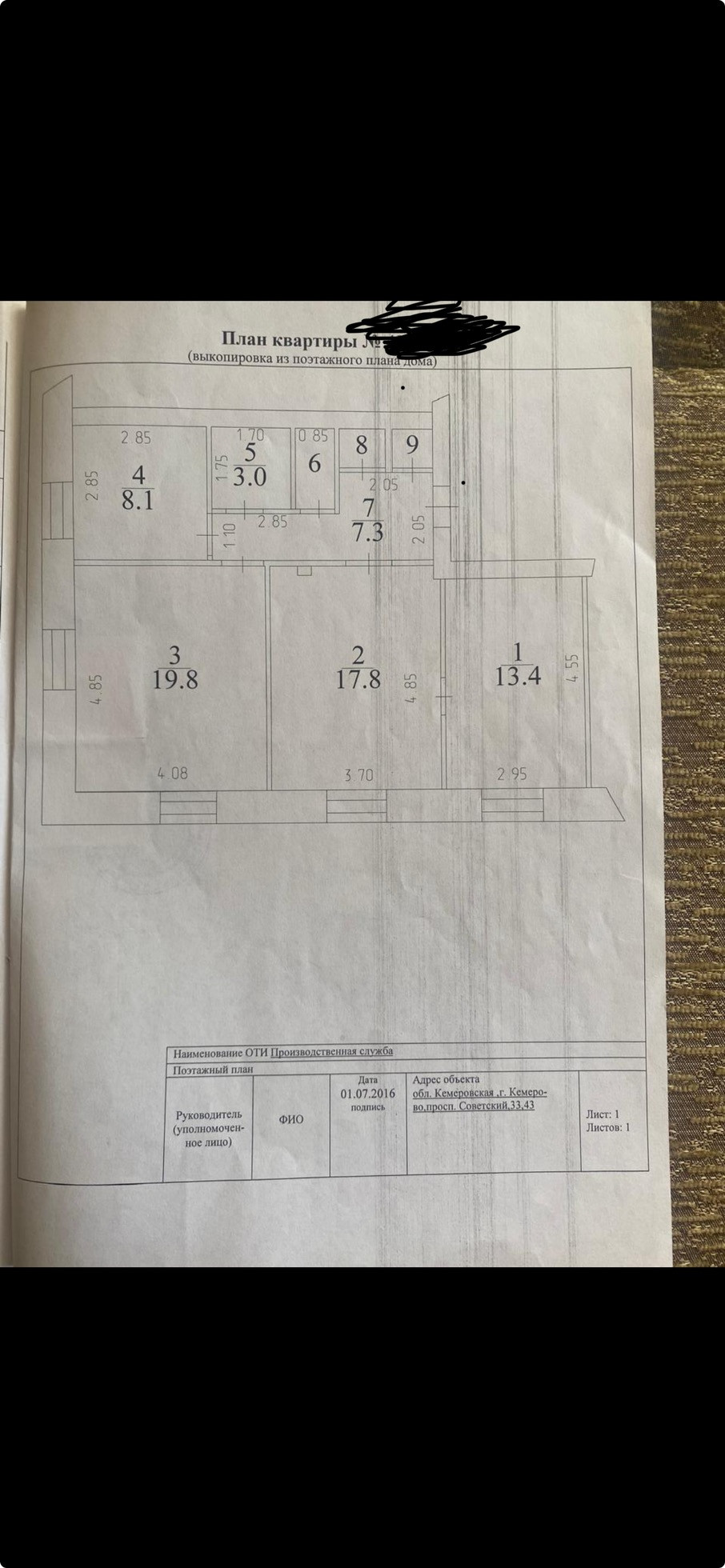 Продаётся уютная трёхкомнатная квартира площадью 73 квадратных метра на втором этаже пятиэтажного кирпичного дома, расположенного по адресу: город Кемерово, Советский проспект, 33. Жилая площадь составляет 51 квадратный метр, а кухня – 8 квадратных метров.