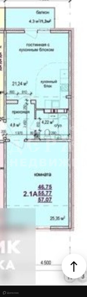 Общая площадь 57 м2