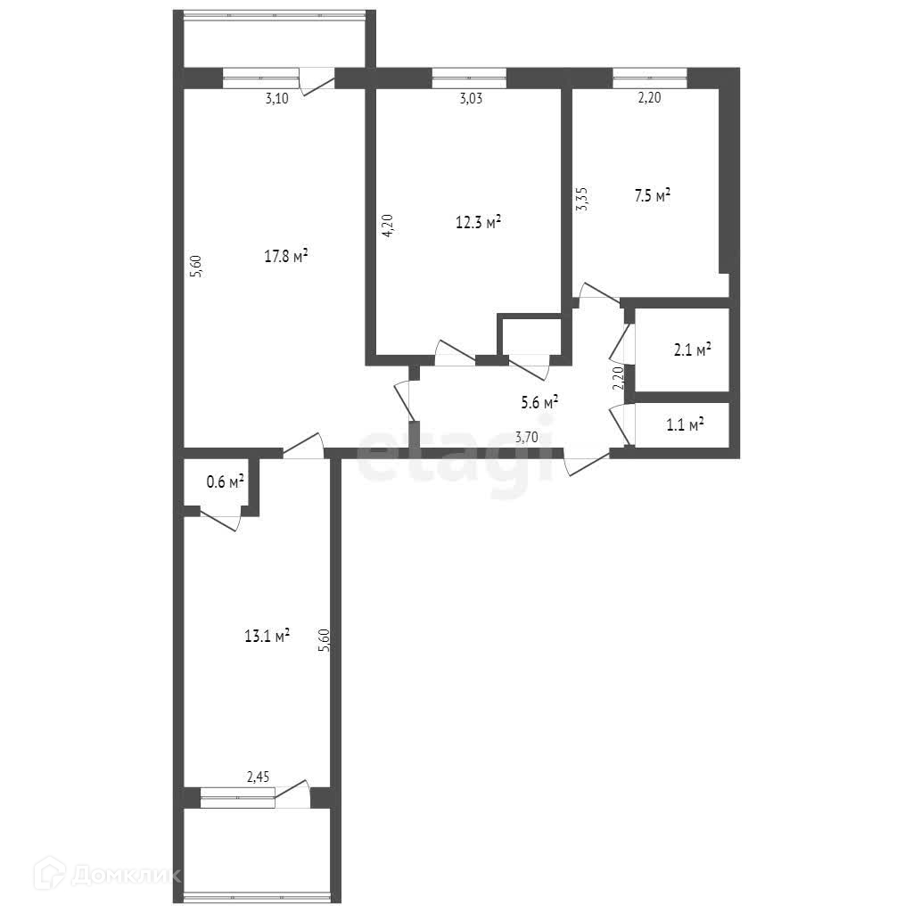 Общая площадь 60.6 м2