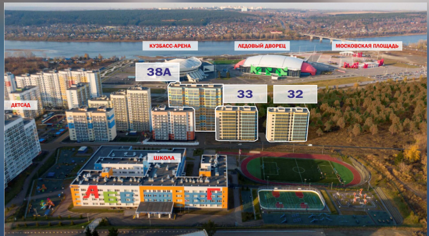 Через дорогу Московская площадь, Ледовый Дворец Кузбасс, спортивный комплекс Арена, скейт парк, новая набережная.