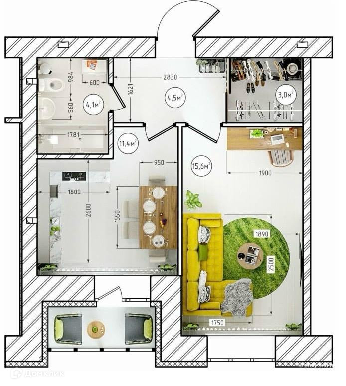 Жилая площадь 15.6 м2
