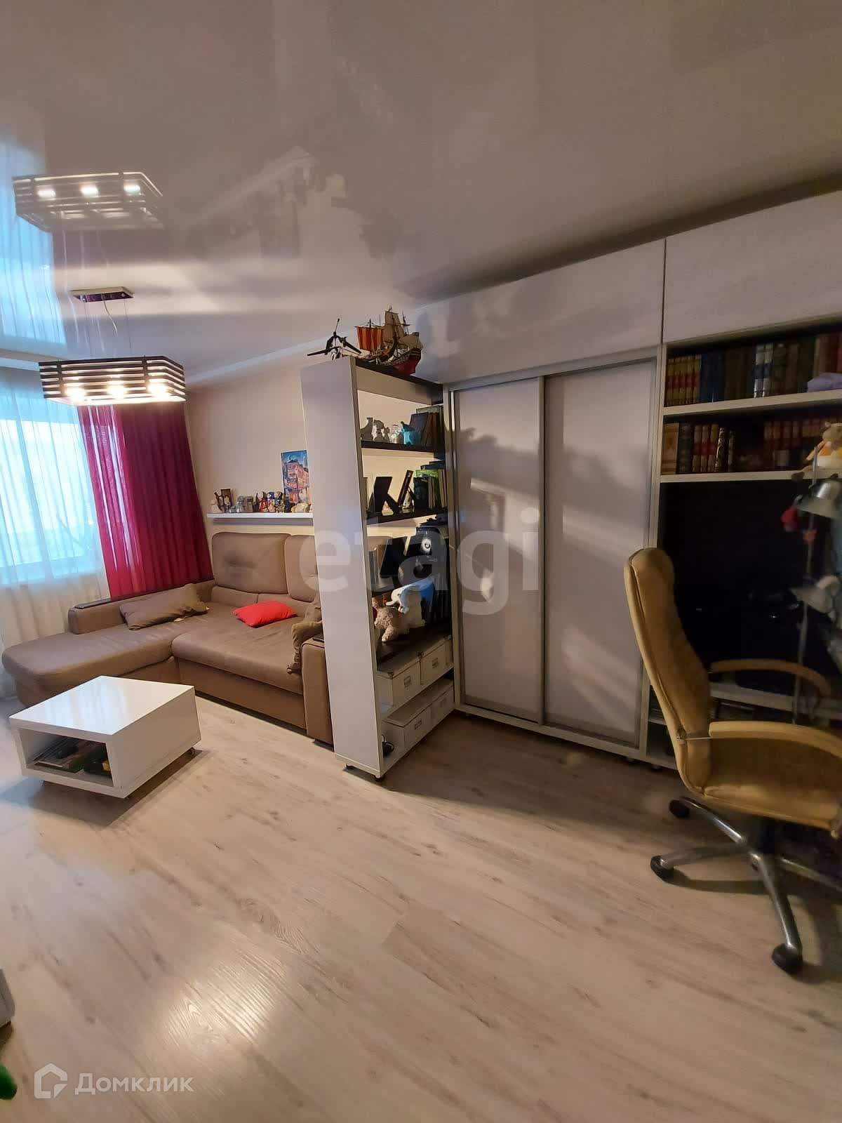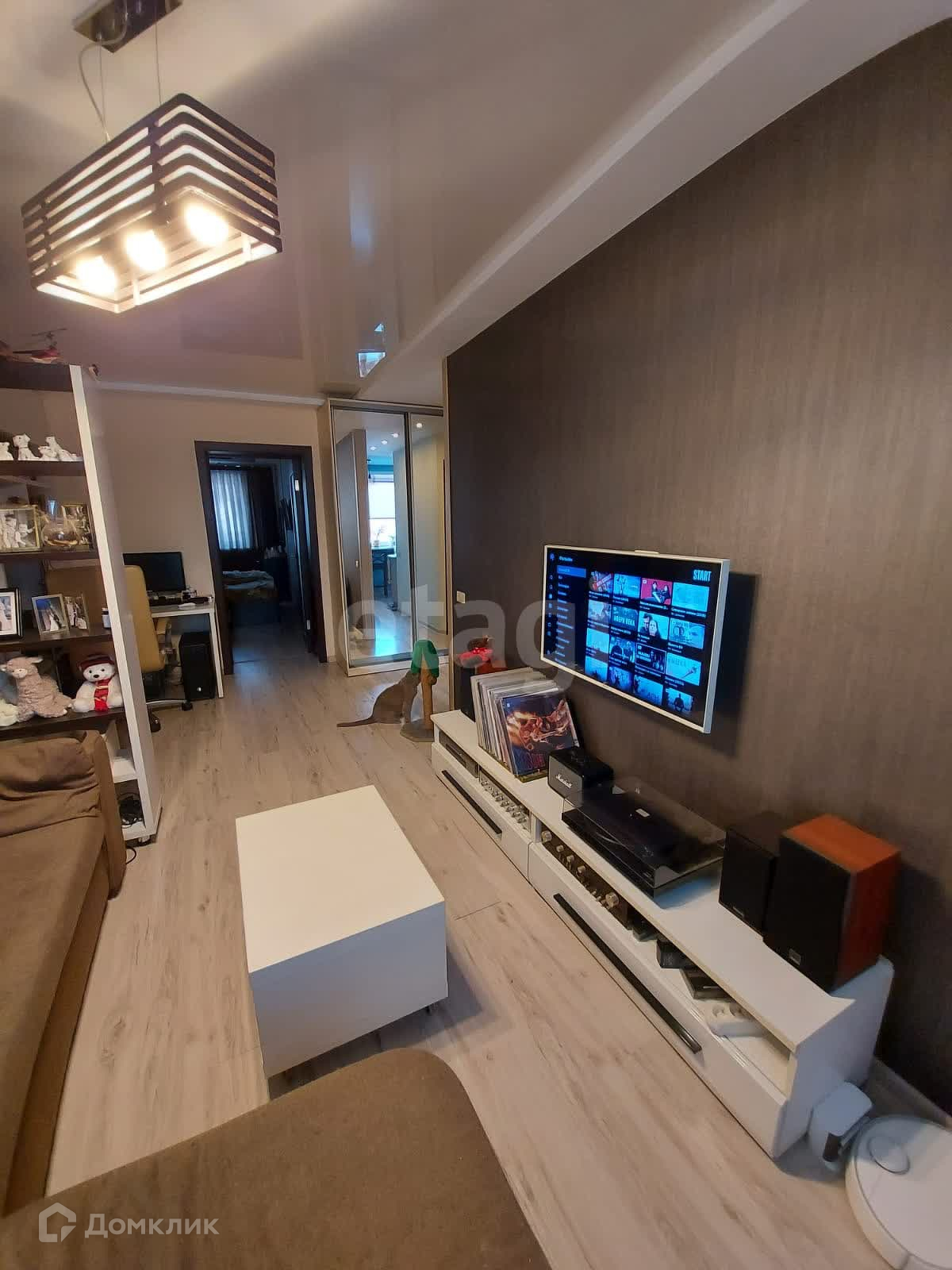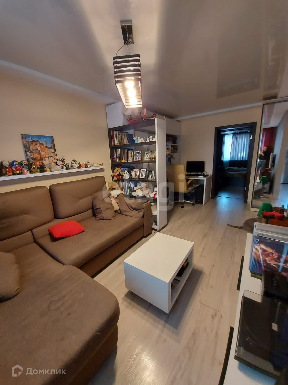Эта квартира — настоящая находка! Она выполнена в едином композиционном стиле и обладает продуманной функциональной планировкой. Просторная гостиная разделена на уютную зону отдыха с G-образным диваном и рабочую зону, что идеально подходит для работы или учебы. Отдельная спальня с огромной кроватью, тумбочками и вместительным платяным шкафом создаст атмосферу уюта и спокойствия. В прихожей расположен зеркальный шкаф, который визуально расширяет пространство.