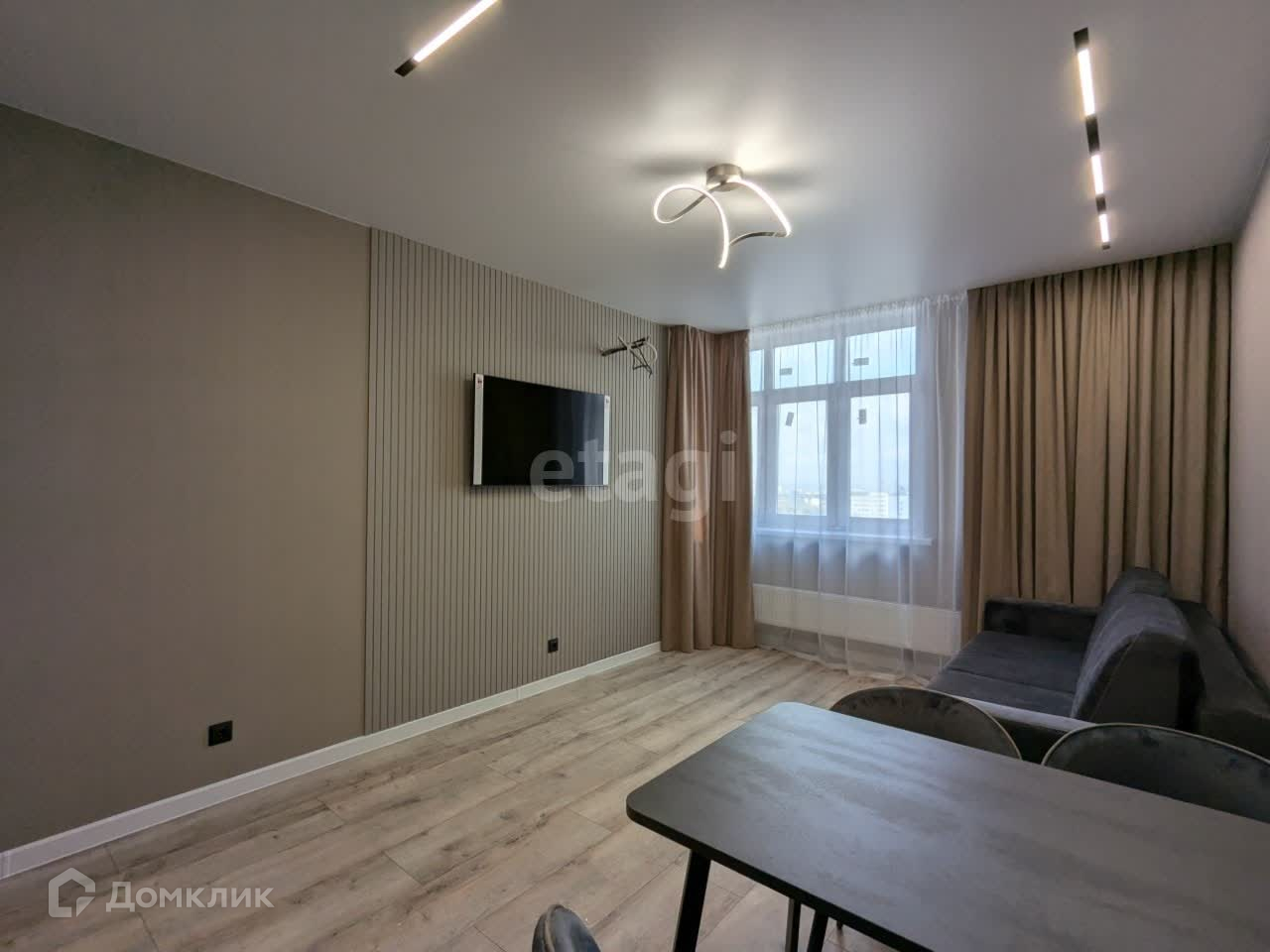 Современный лаконичный ремонт с новой мебелью и техникой . Использовались дорогие качественные материалы . Просторная гостиная , оснащена новой современной мебелью и техникой.