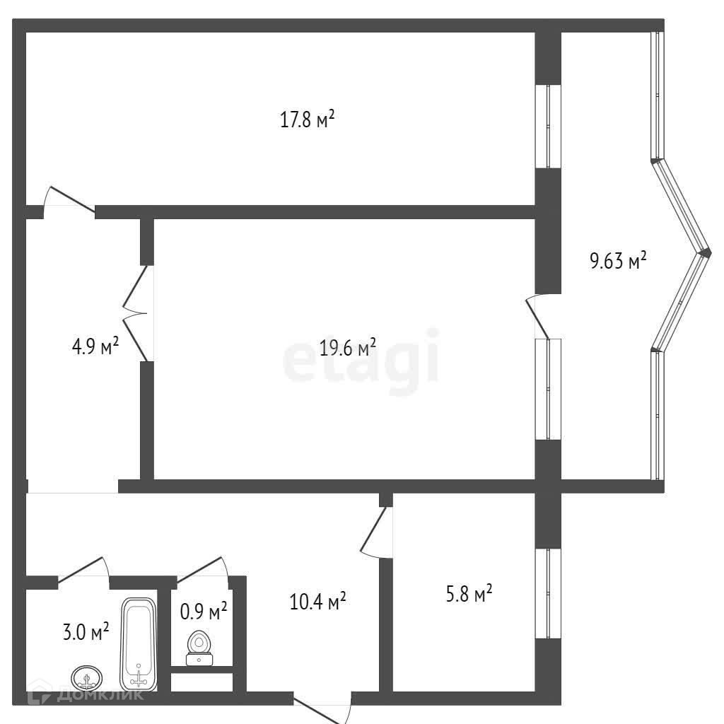 Общая площадь 63 м2