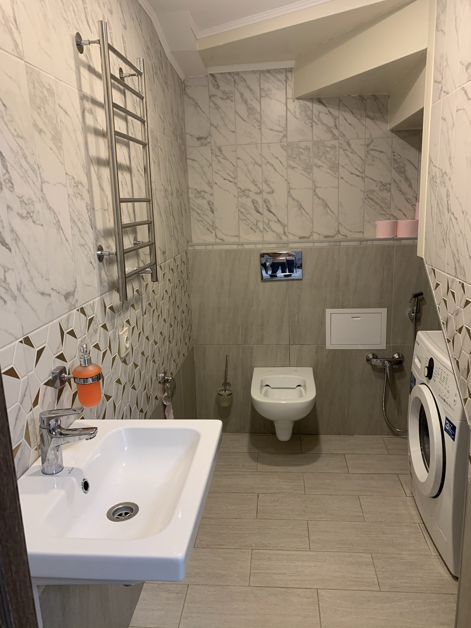 На первом этаже водяные теплые полы (работают от центрального отопления)