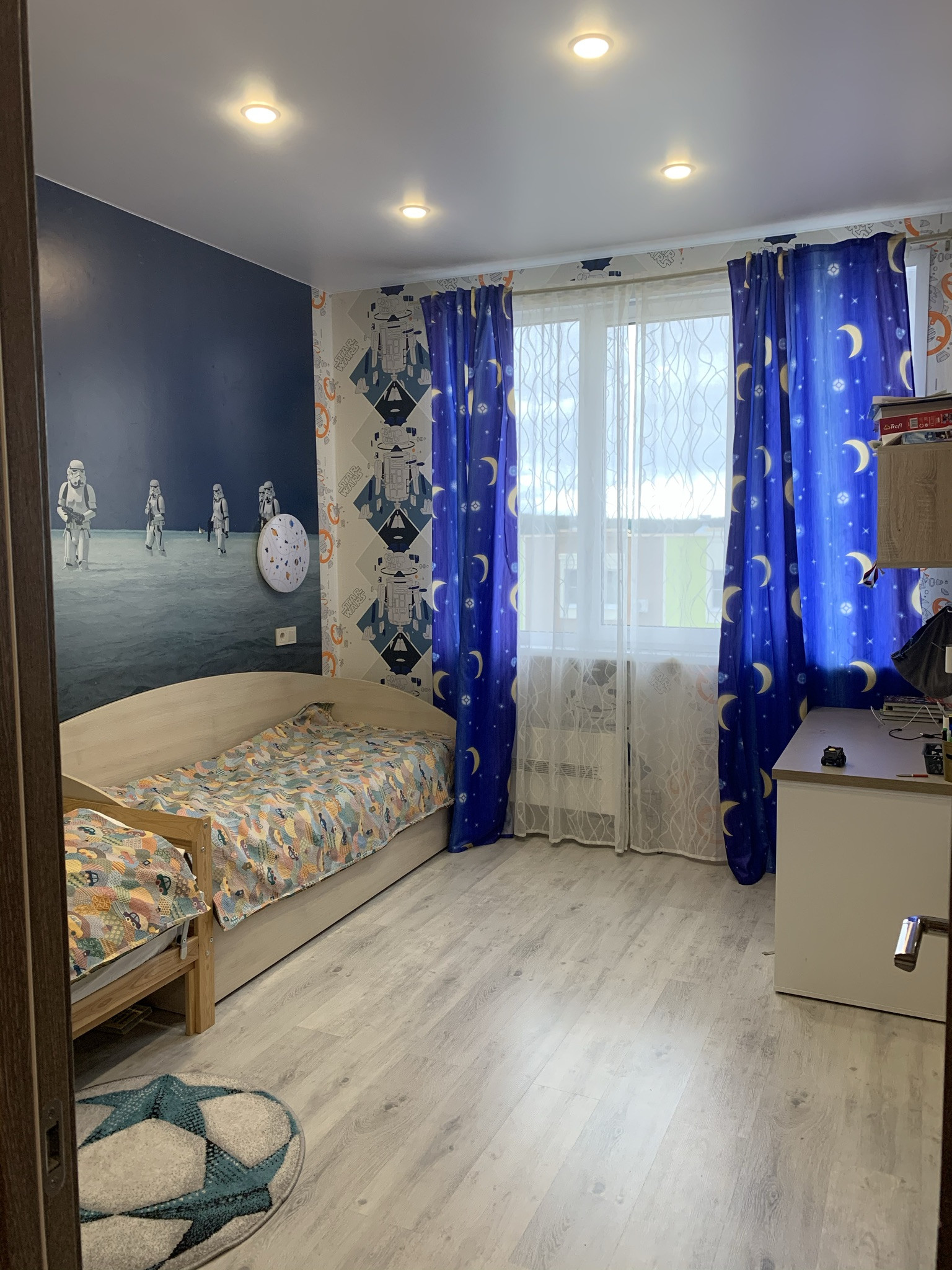 Две детские комнаты, совмещены в одно пространство Спальня и Игровая комната, при желании арку, разделяющую комнаты можно перекрыть.