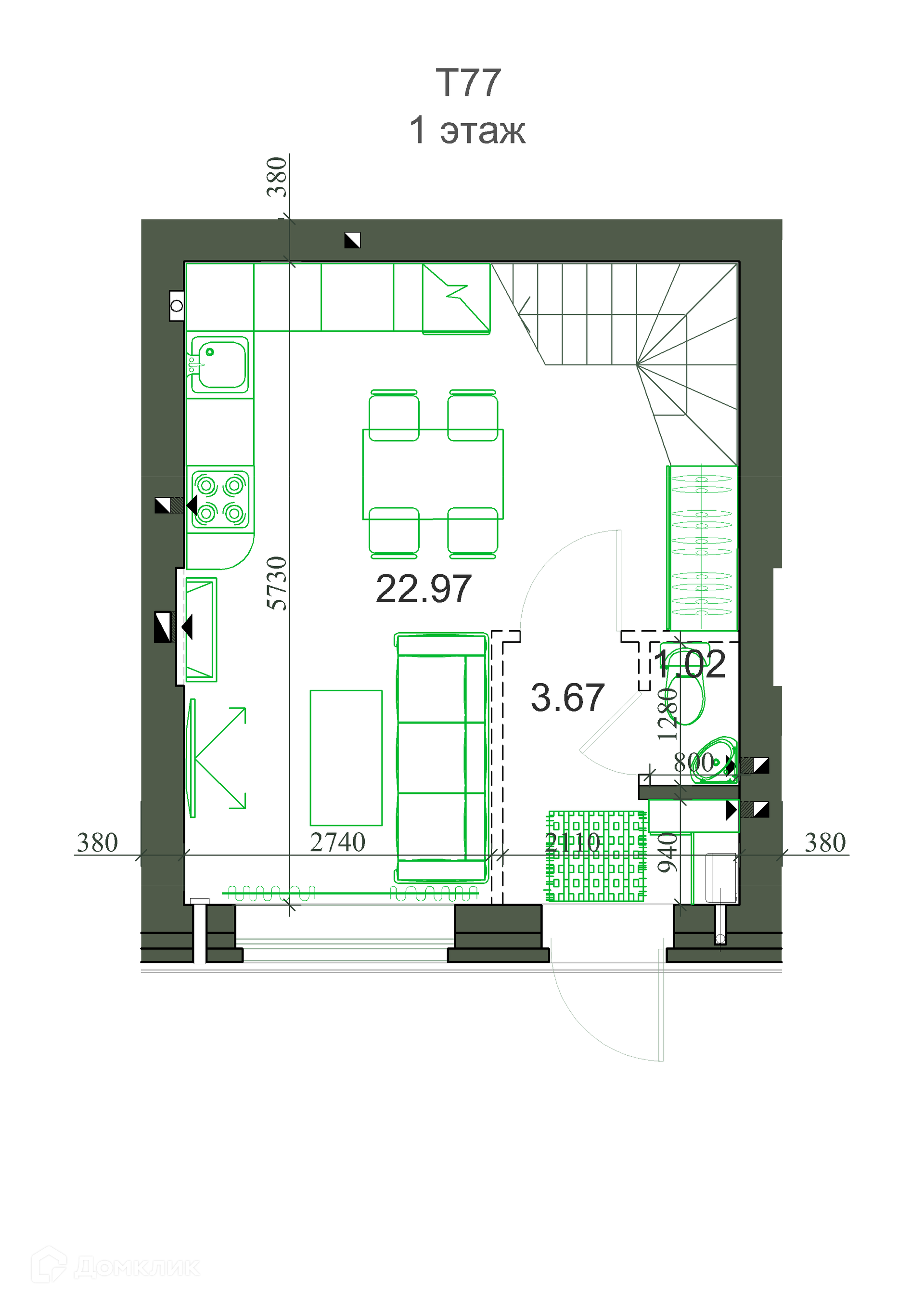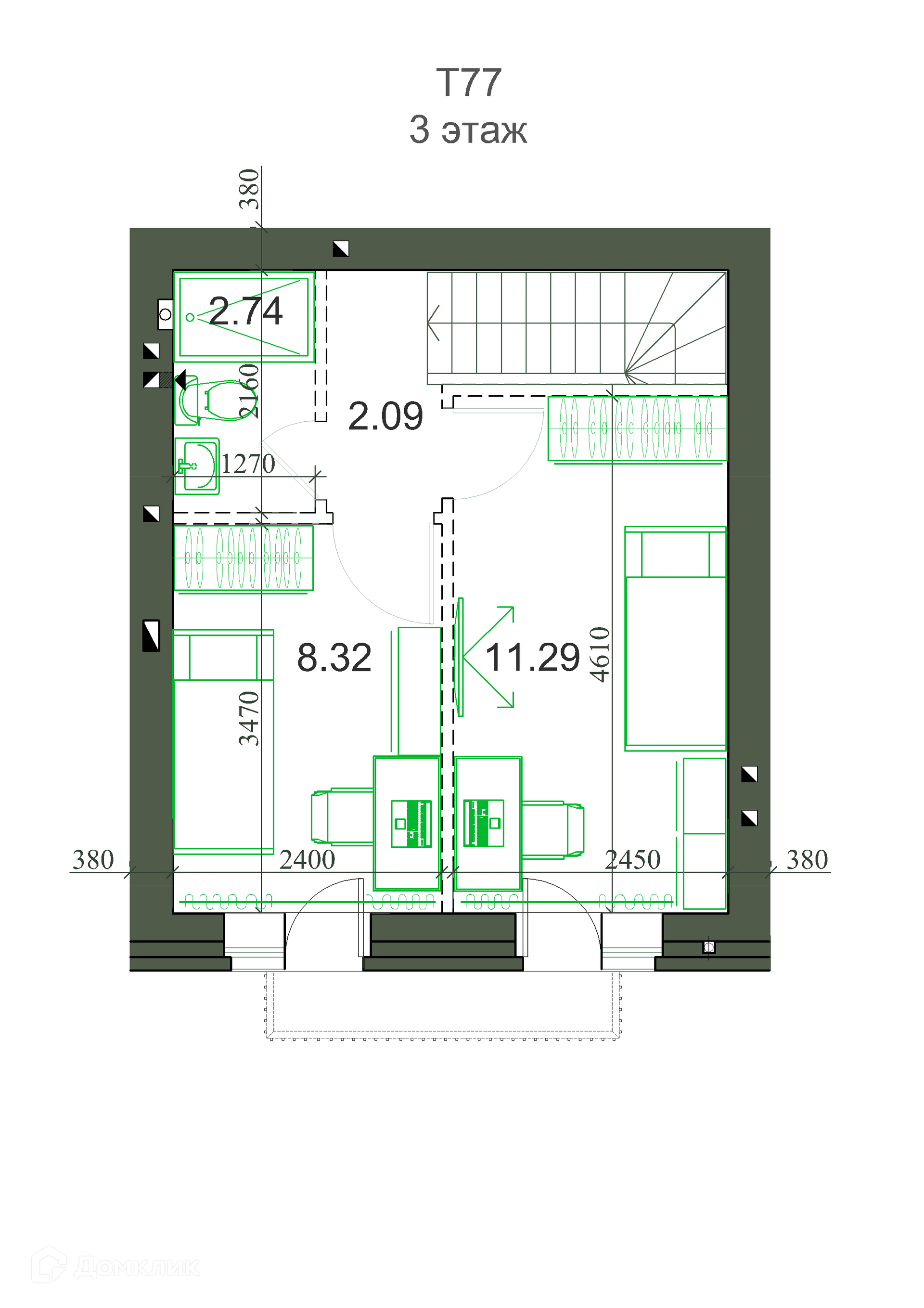 3-этажный таунхаус, 78.07 м2, на продажу в Кемерово