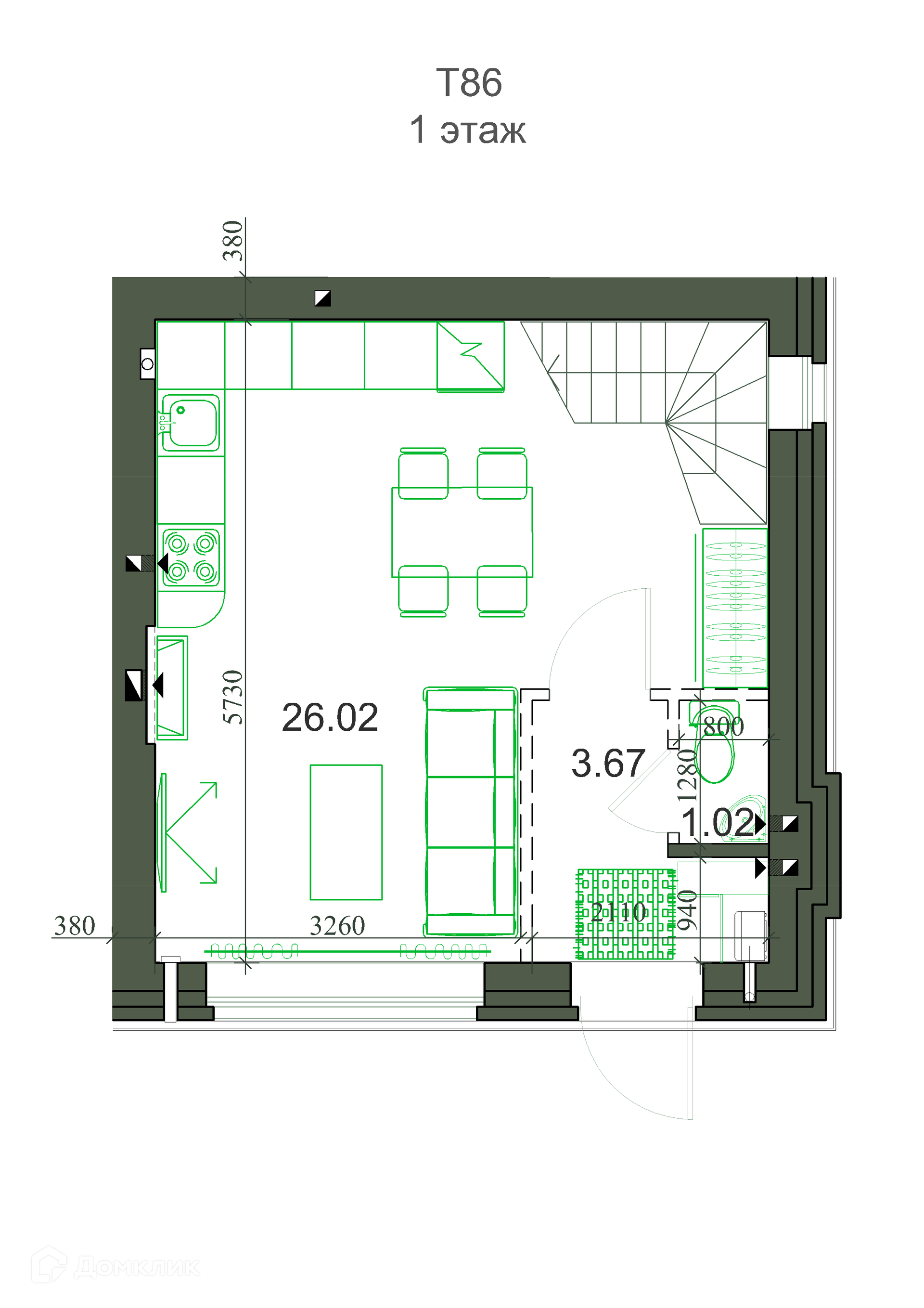 3-этажный таунхаус, 87.04 м2, на продажу в Кемерово