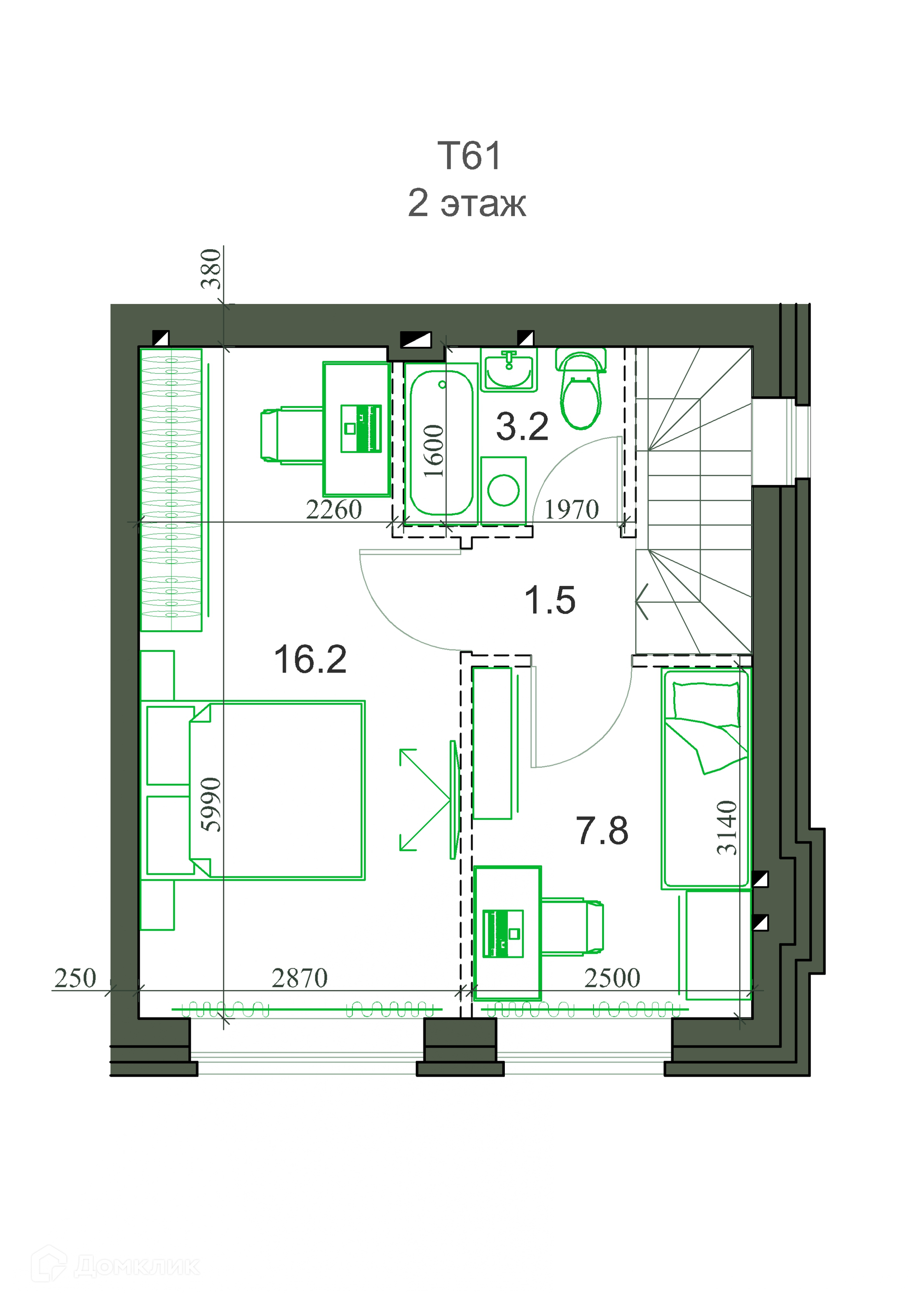 Общая площадь 59.91 м2