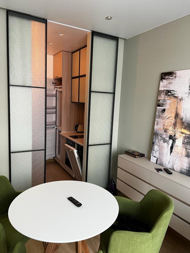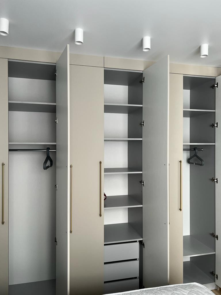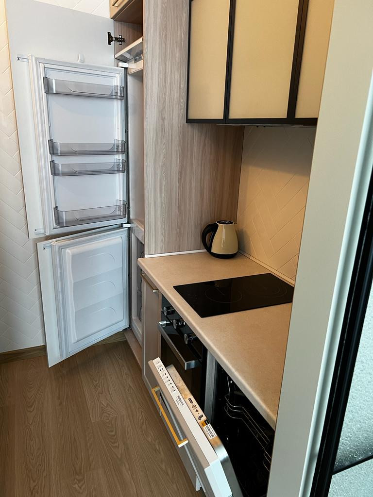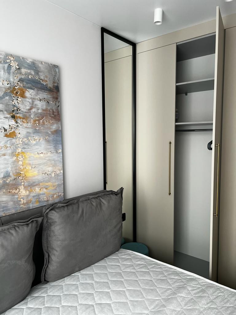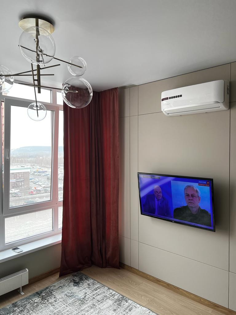 • В квартире для проживания имеется вся мебель и бытовая техника: телевизор, электропечь, чайник, стиральная машина, микроволновая печь, пылесос, утюг. Большая двуспальная кровать, в спальне вместительный шкаф. При входе также имеется небольшая гардеробная для верхней одежды, обуви и др.