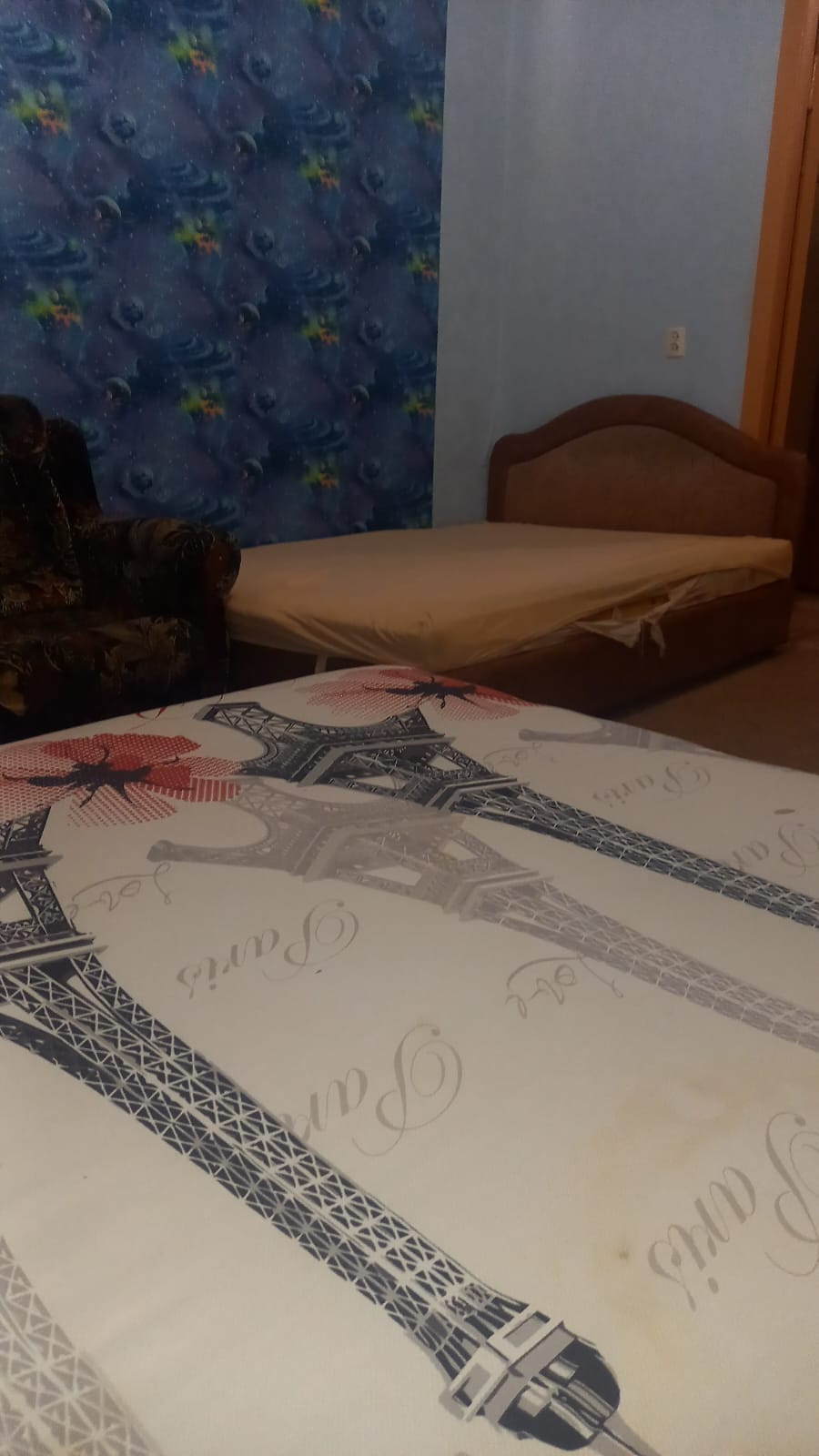 Полнометражная, комнаты изолированные, большая кухня, спальные места, кресло, компьютерный стол, шкаф в коридоре, в кухне эл.печь, шкаф, стол. Холодильника и стиральной машины нет. Оплата по счетчикам дополнительно.