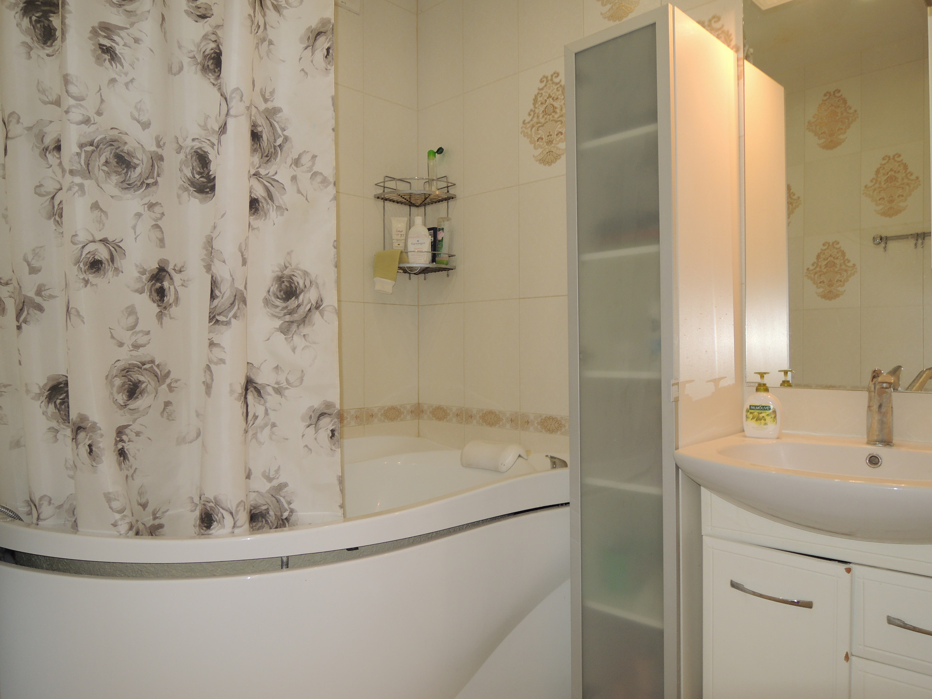 • В квартире для проживания есть вся мебель и бытовая техника: телевизор, электропечь, чайник, стиральная машина, микроволновая печь, пылесос, утюг. Большая двуспальная кровать, в спальне вместительный шкаф и др.