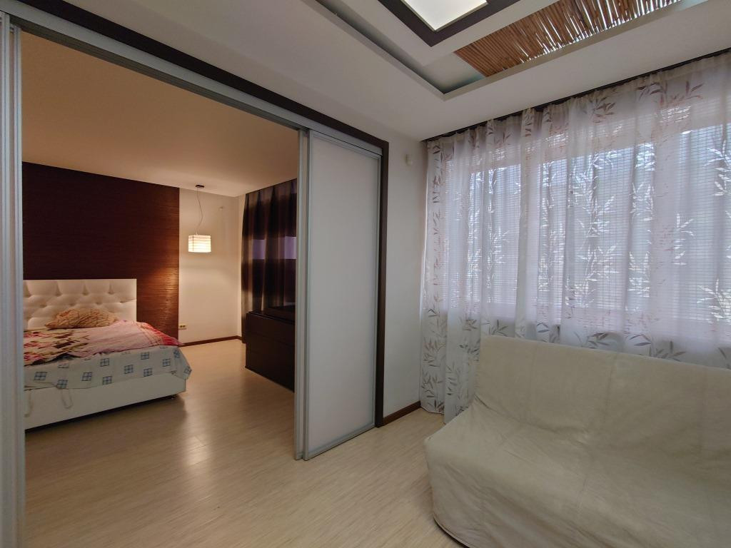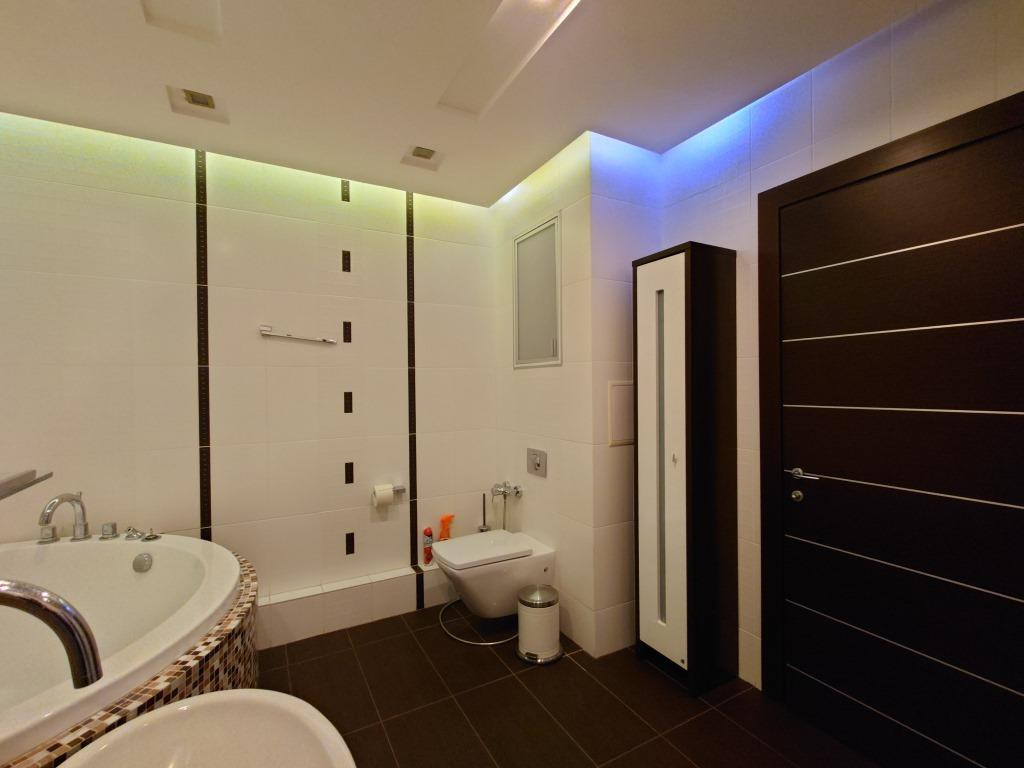 • Выполнен высококачественный ремонт по европейским стандартам. Эксклюзивный дизайн. Два санузла, душевая кабина, ванная, на время отключение горячей воды установлен водонагреватель. Для хранения вещей предусмотрены шкафы – купе,  оборудованная гардеробная.