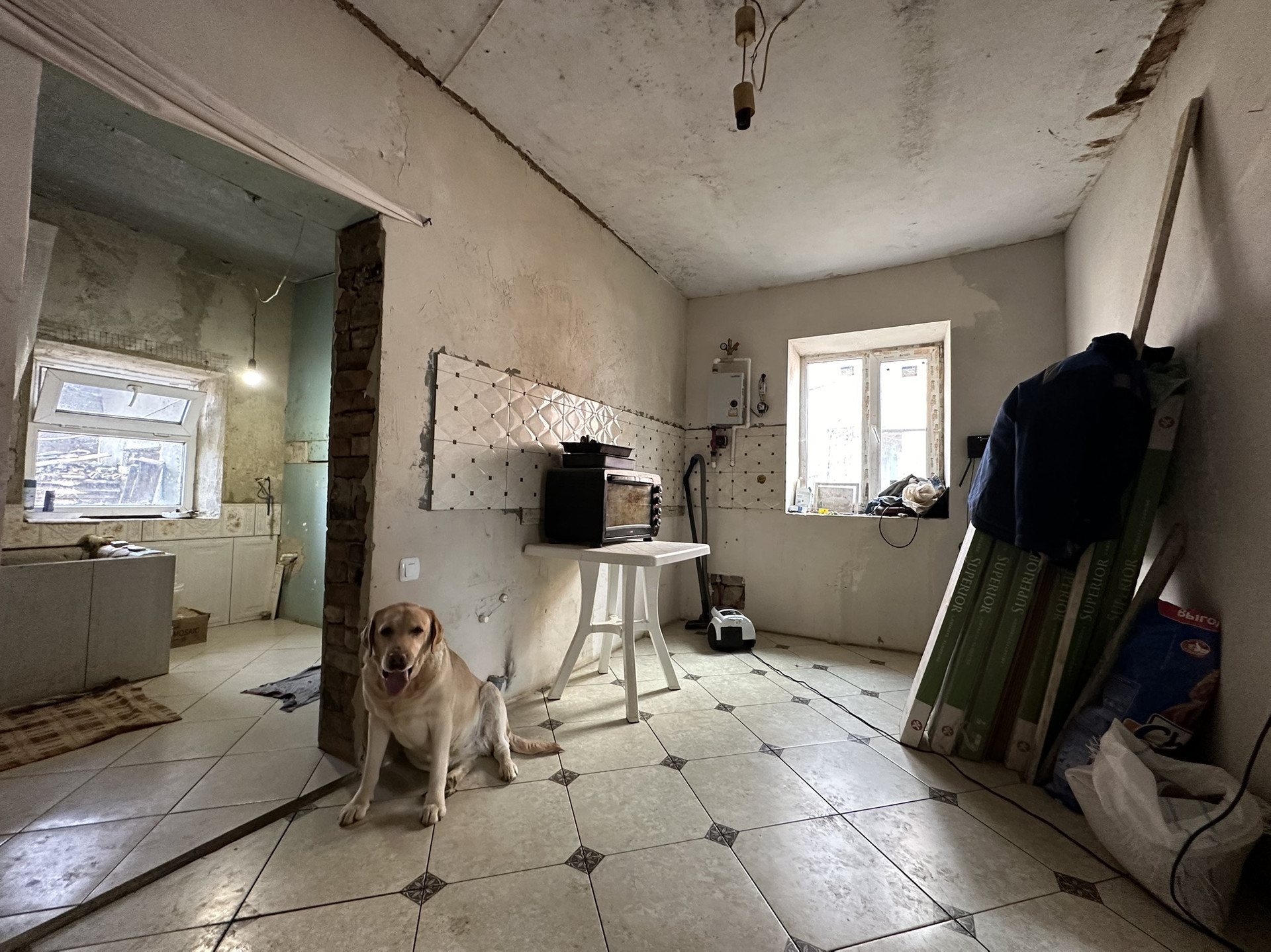 Предлагаю к продаже  Дом по ул. Курганная район Аджимушкай. Дом площадью 53, 2 кВ м на участке 9, 3 сотки. Дом в жилом состоянии, в состоянии начатого ремонта. Поменяна электрика, окна, на отопление - электрический котел, есть туалет, ванная, на горячую воду-бойлер. При входе пол выложен плиткой, фартук кухонный из кафеля. За счет пристройки можно сделать еще одну жилую комнату. Газ проходит прям за забором. Участок ровный, ухоженный, есть сарайчики, курятник.  Остановка в 5 минутах ходьбы. Рассмотрим ЛЮБОЙ РАСЧЕТ. Звоните