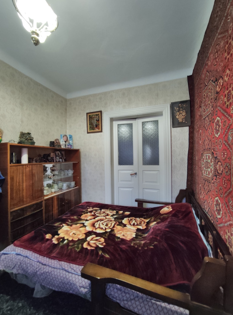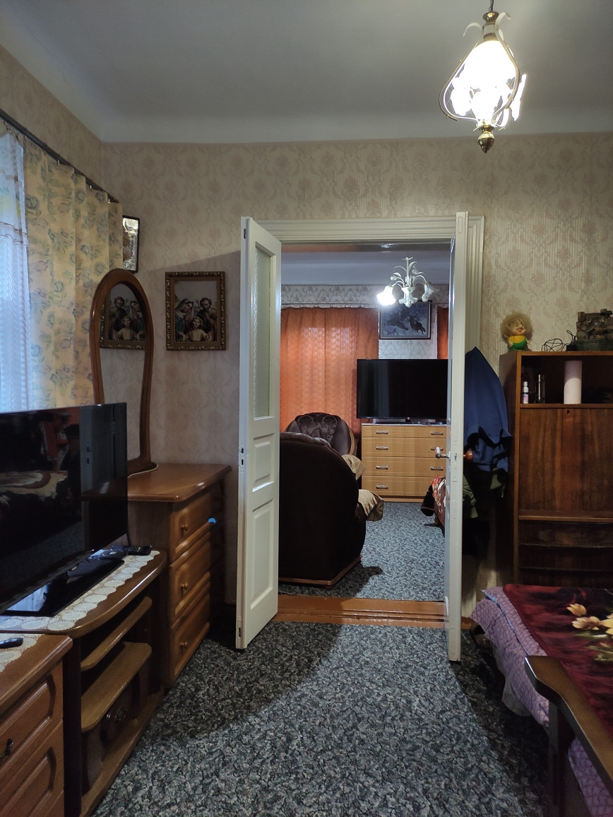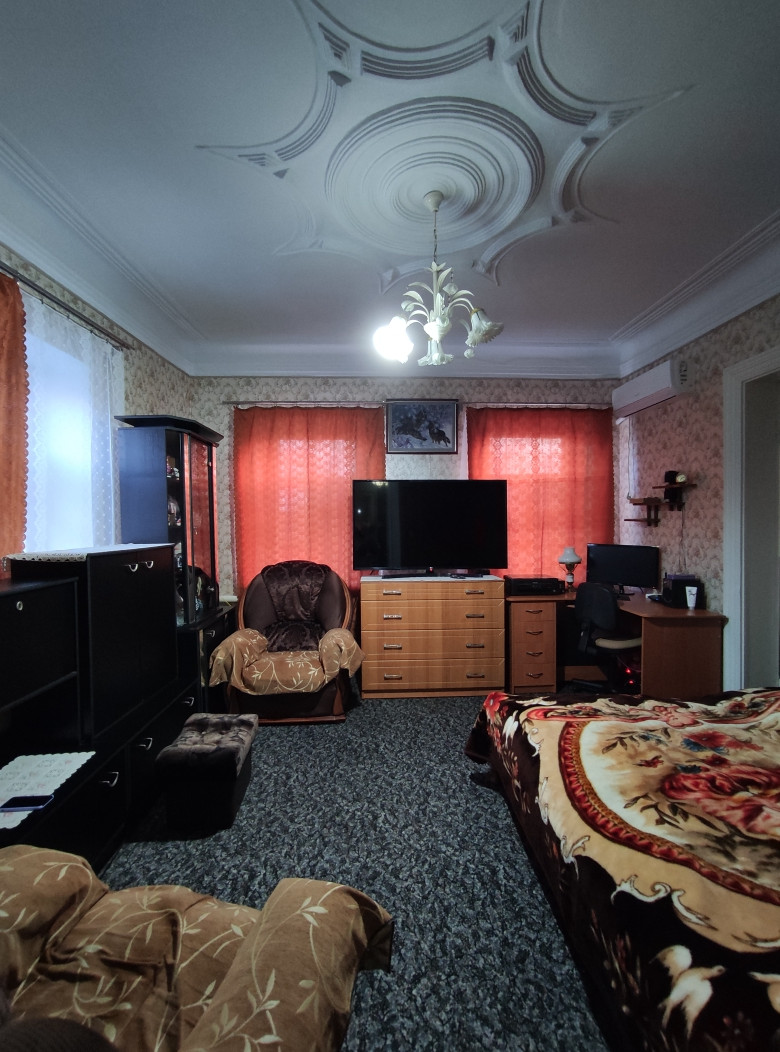 Площадь дома 70 кв.м. Высокий цоколь. 4 комнаты. Свет, газ, вода. Во дворе летняя кухня, гараж, хоз.постройки.