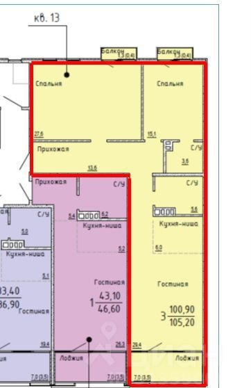 Общая площадь 105.2 м2