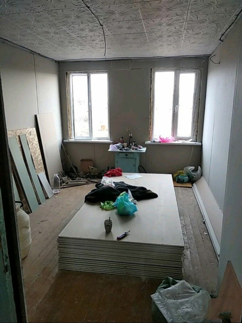 Большая кухня, есть кладовая, сделан ремонт. обшито гипсокартоном и зашпаклевано, поменяна проводка, планируется установка санузла, отопление кондиционером,  подготовлено под отделку. Есть новые трубы для водопровода и канализации. Установлены новые металлопластиковые окна и металлическая дверь. Подходит любой вид расчета.  Документы готовы.