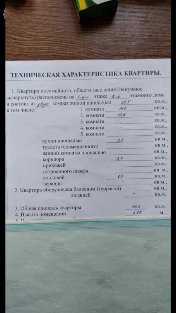 Продается 2комнатная квартира на первом этаже двухэтажного каменного дома 46.3м. кв.