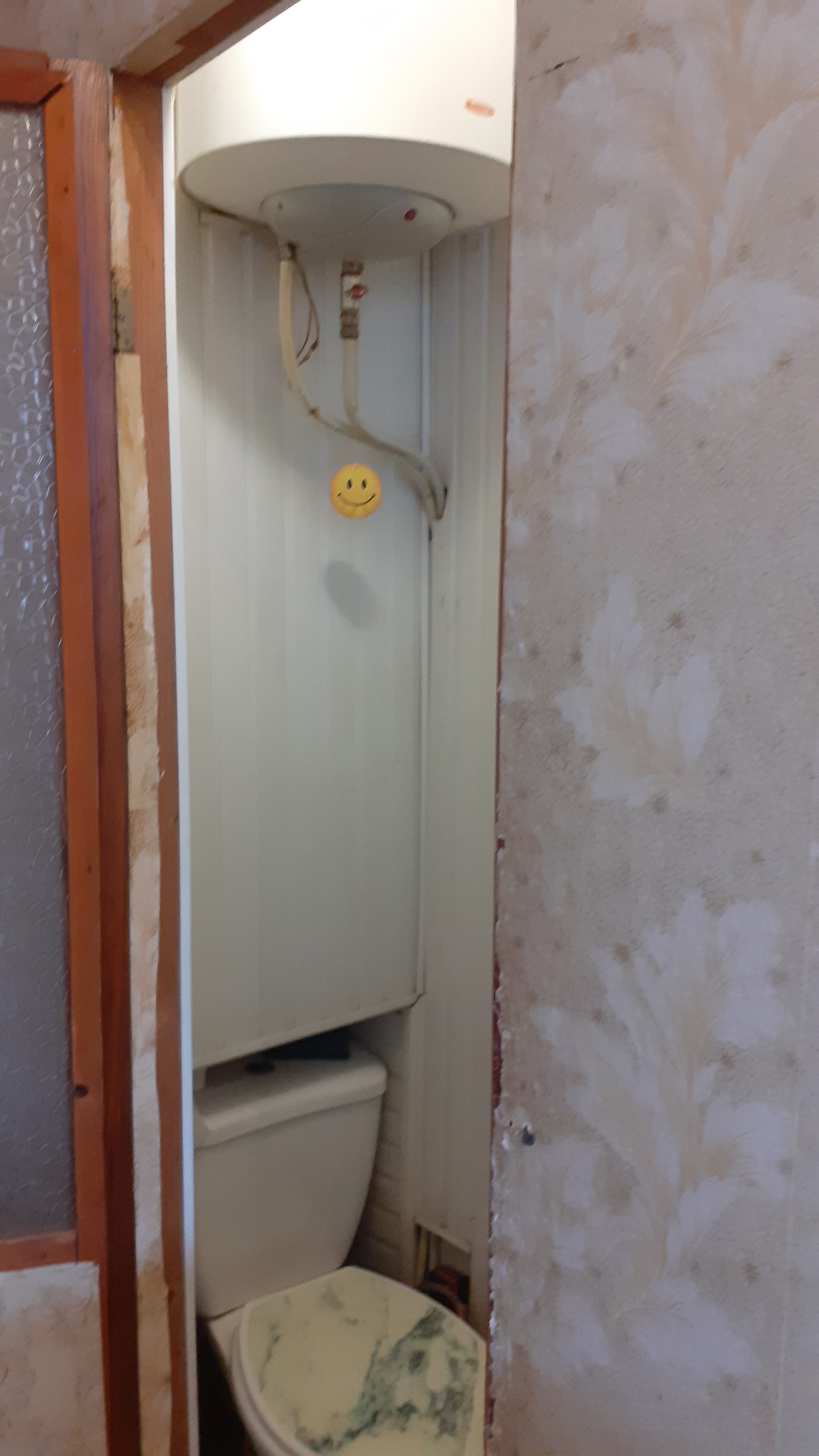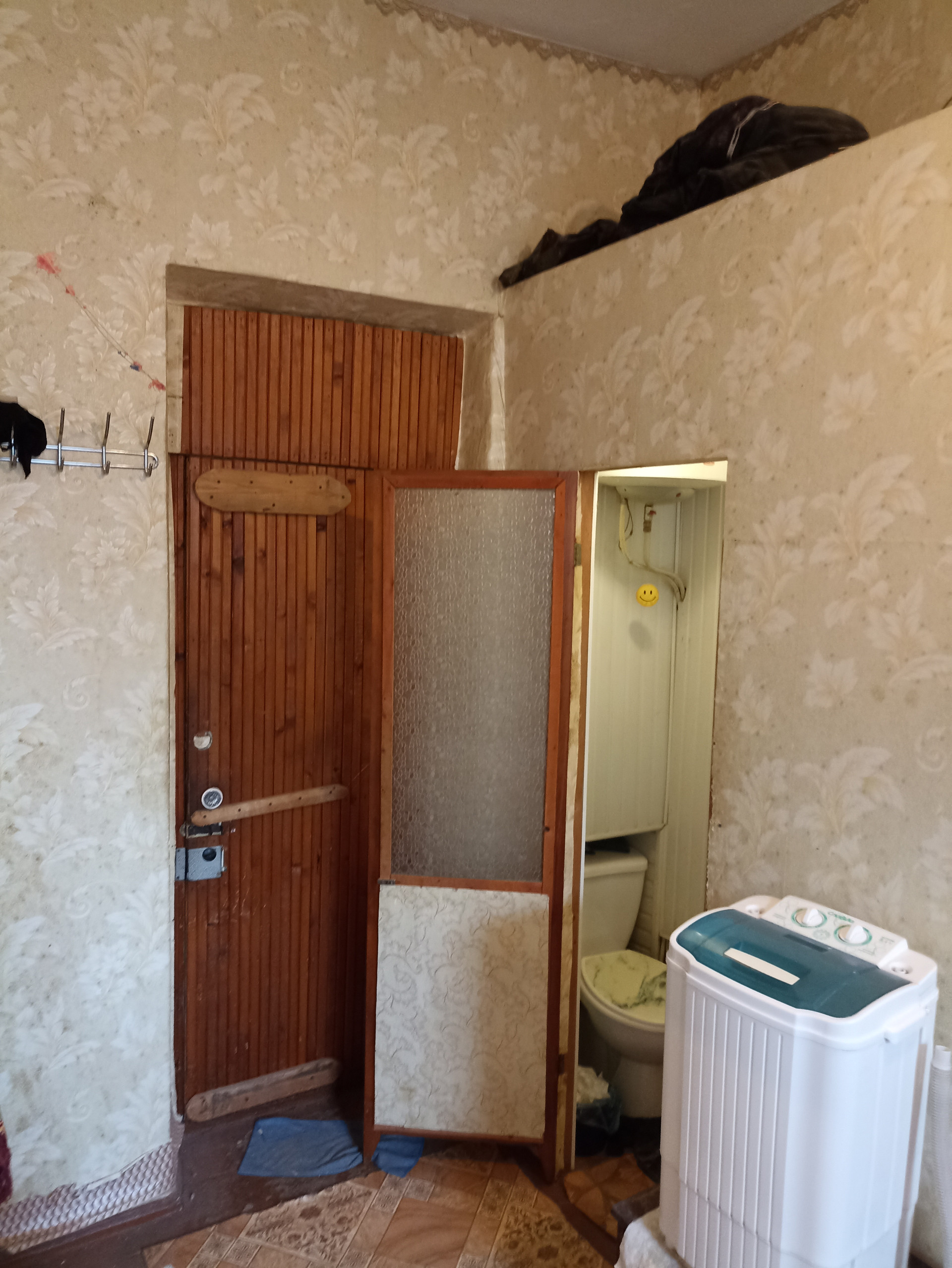 Сан.узел совмещен (унитаз и душевой поддон), горячая вода подается из бойлера.