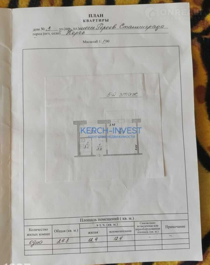 1-комнатная квартира, 25 м2, этаж 5 / 5, на продажу в Керчи, шоссе Героев Сталинграда, 3
