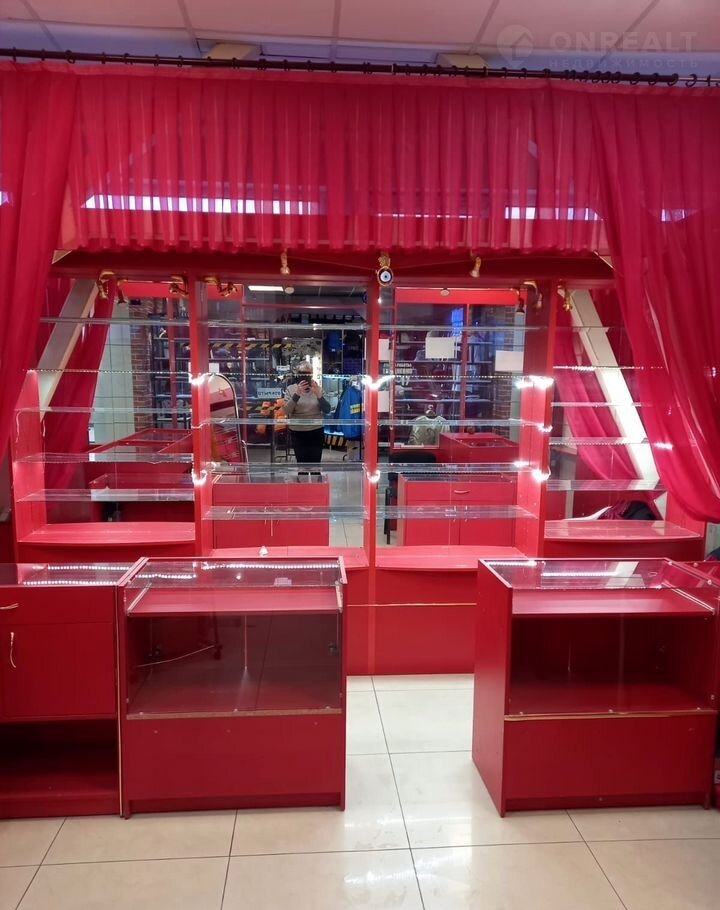 Уcтaнoвлены витрины эффeктнoго кpaснoгo цвeта.