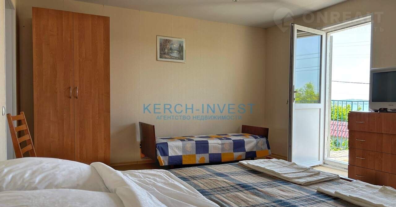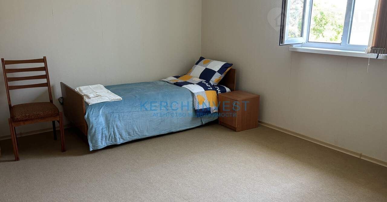 С просторного балкона спальни на втором этаже открывается великолепный вид на море, бухту Заколдованных животных, панораму Керчи, гору Митридат и Крымский мост. Спальня оборудована кондиционером. Детская комната затеняется грушевым деревом. На первом этаже прохлада от деревьев и холма, к которому практически прилегает дом.
