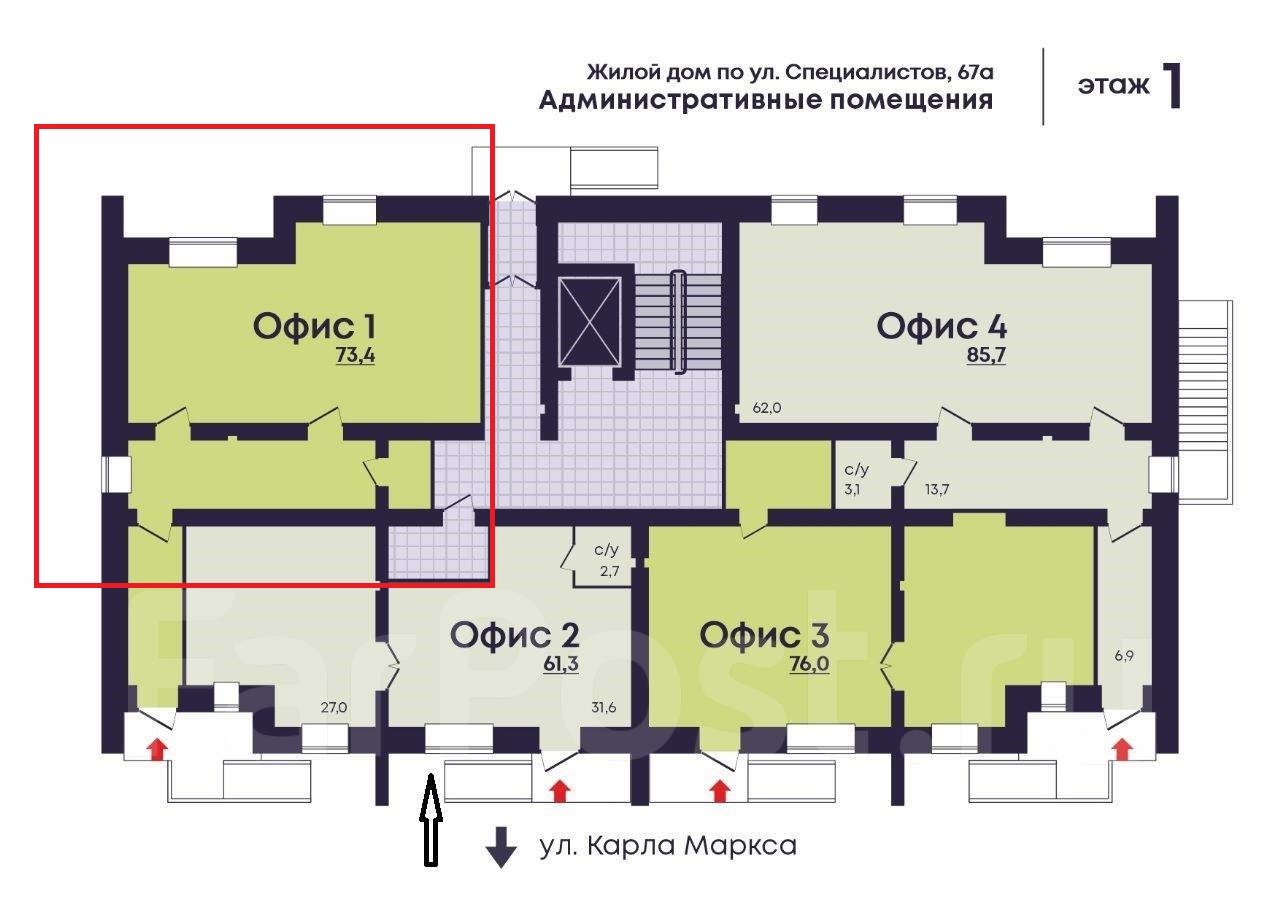 Офис, 73.4 м2, в аренду в Хабаровске, улица Специалистов, 67А