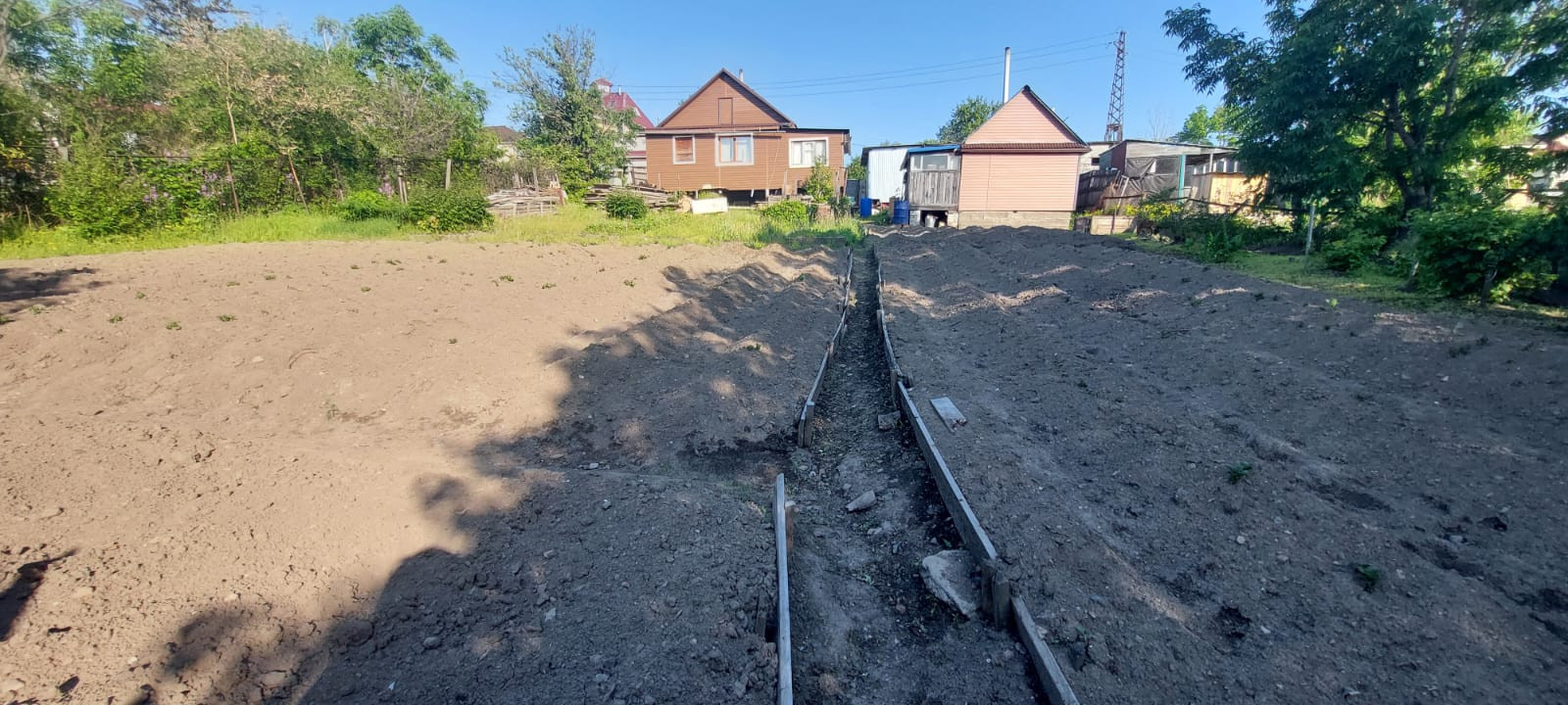 Участок расположен под небольшим уклоном, поэтому не топит и быстро подсыхает в весенний период и в период дождей.