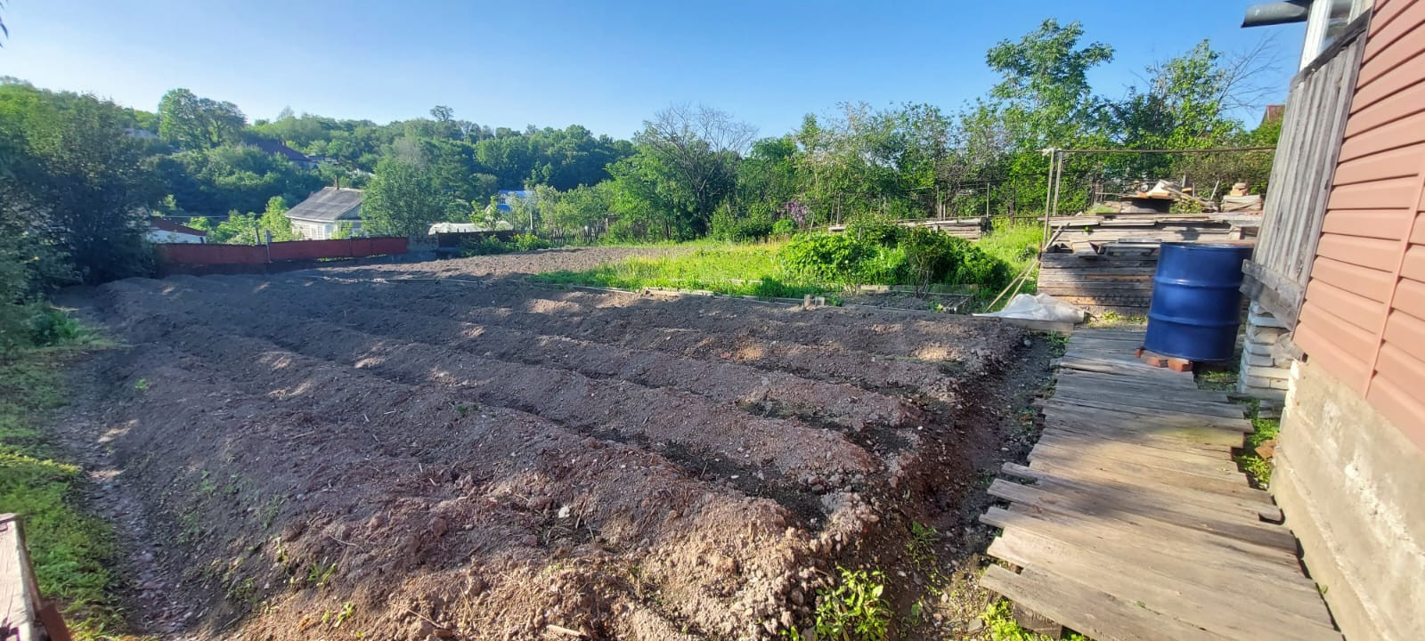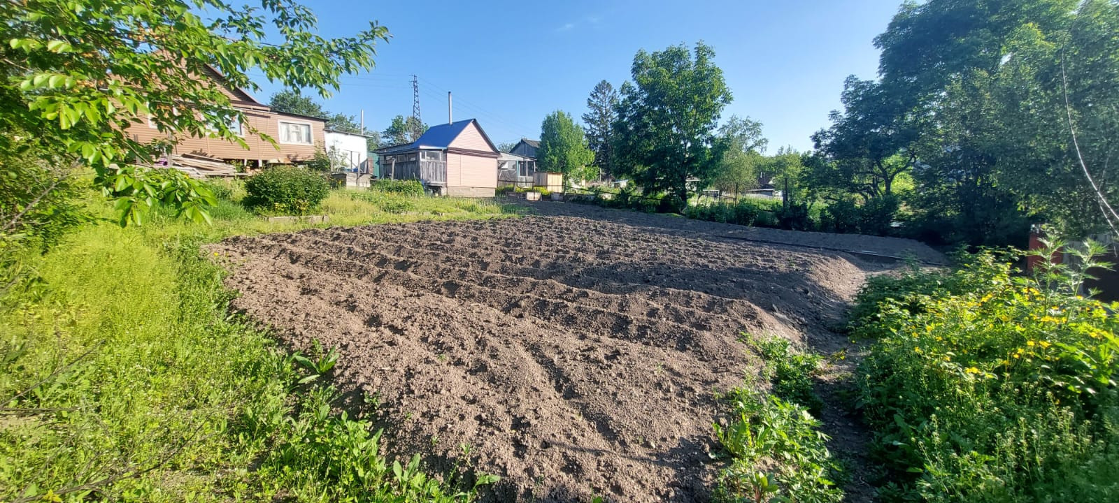 Земля очень плодородная, растет все. Есть плодово-ягодные кустарники.