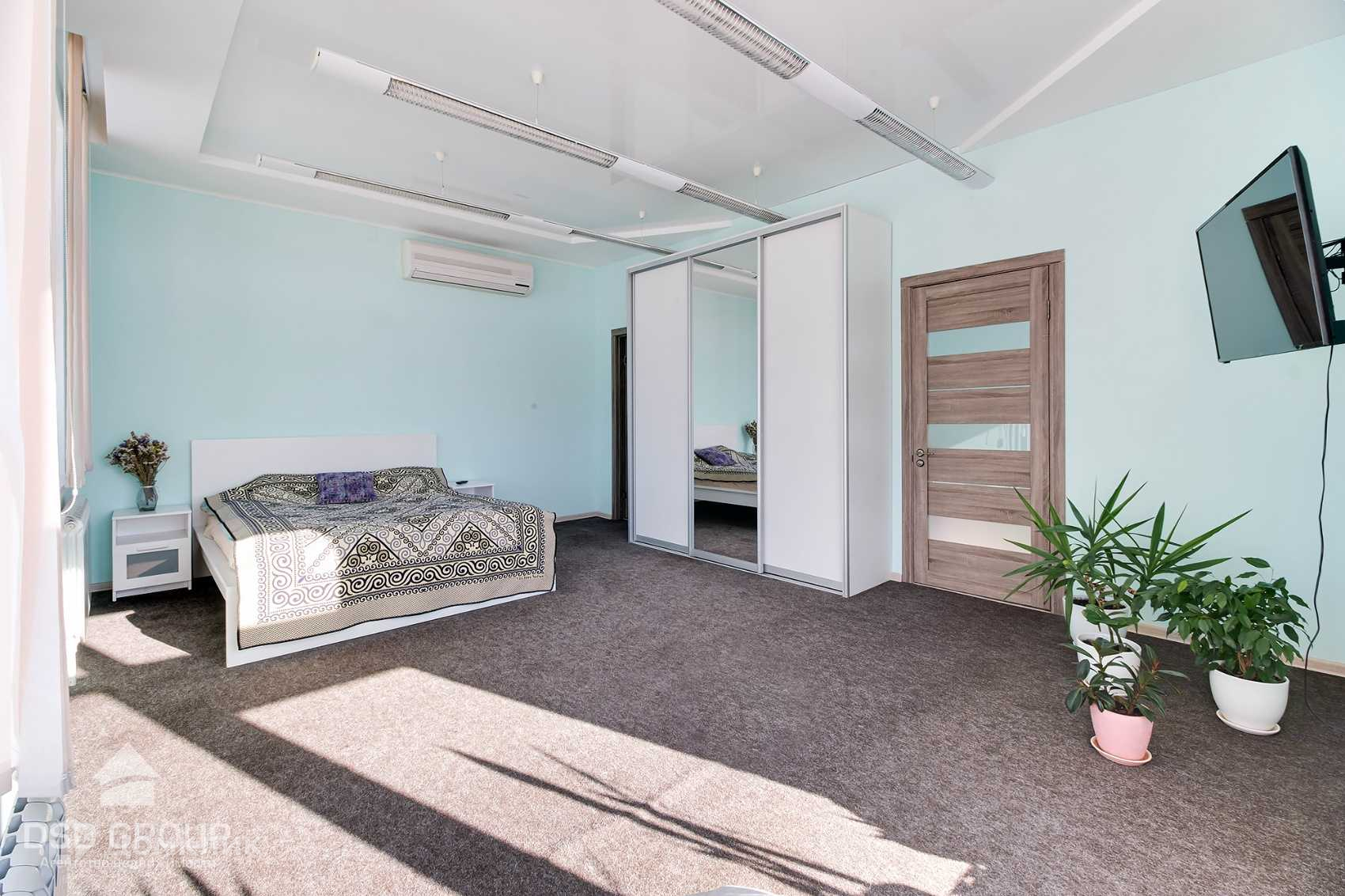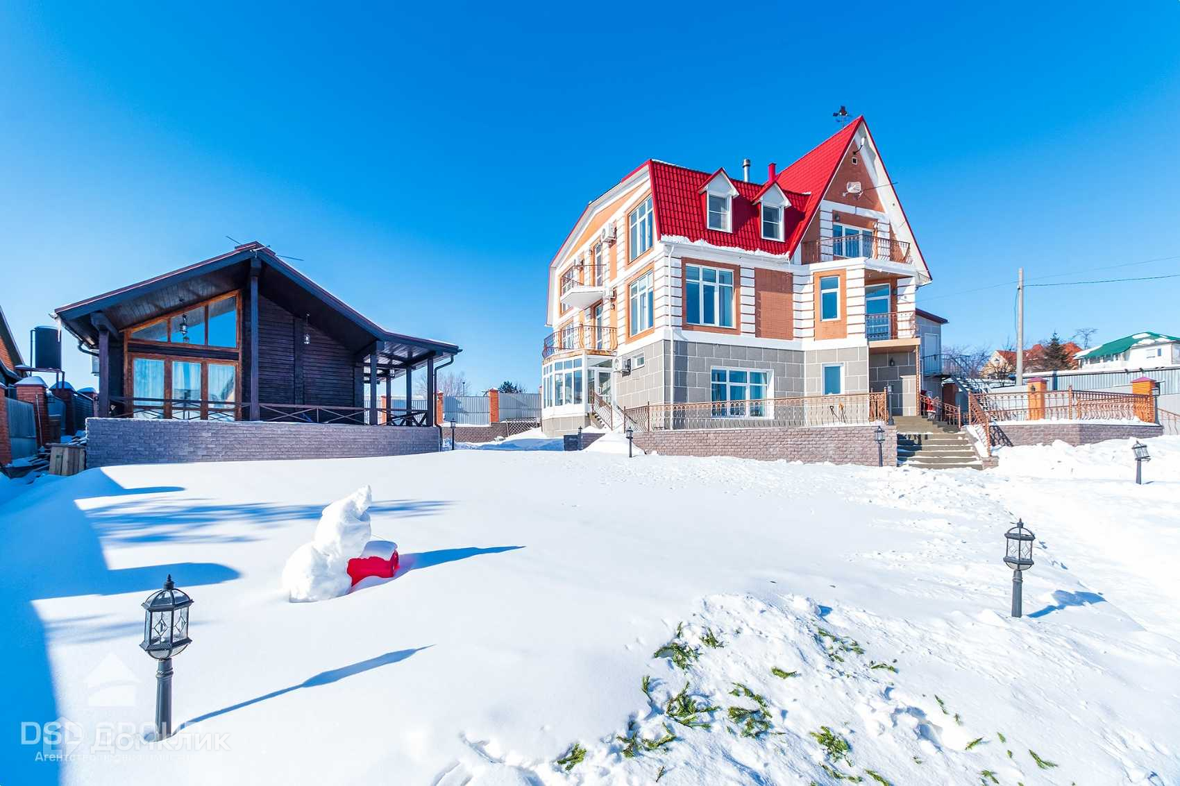 К дому пристроен теплый 2-х этажный гараж, где на втором этаже имеется помещение для проживания охраны или обслуживающего персона.