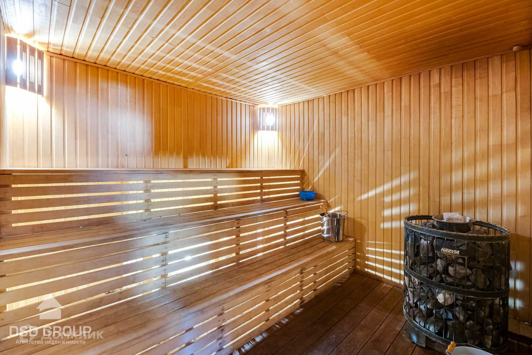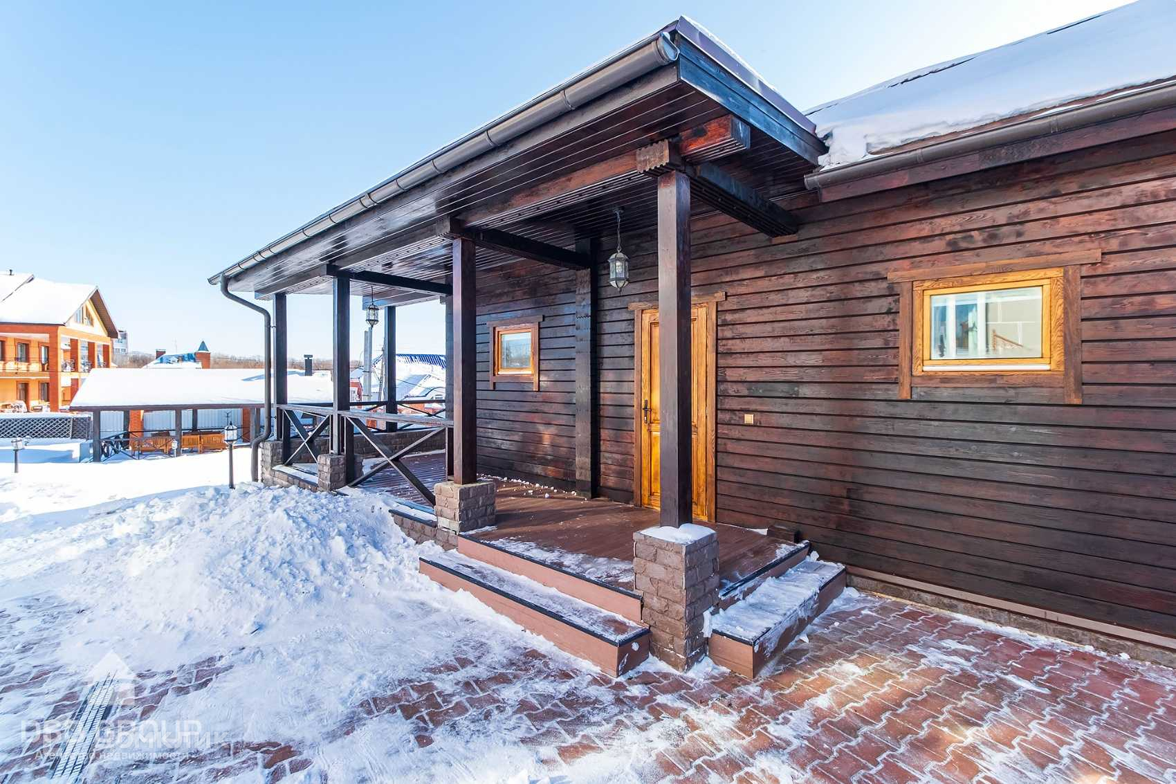 - Просторная баня с большой террасой, с двумя раздевалками, с шикарной парилкой, сан узлом, отдельной комнатой где размещается посудомоечная машинка, баня была привезена из Сибири, где была изготовлена по индивидуальному проекту из профилированного бруса сибирской сосны.