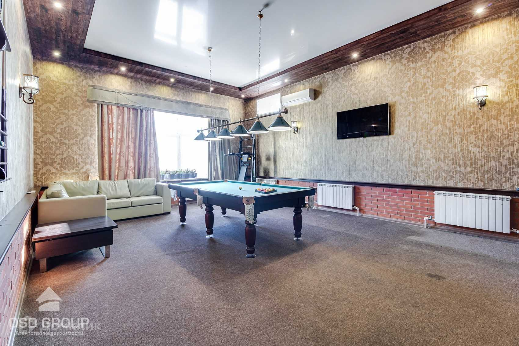 просторный холл и бильярдная с выходом на балкон, гардероб, прихожая. тех. помещение. прачечная; выход в цокольный этаж двух уровней.