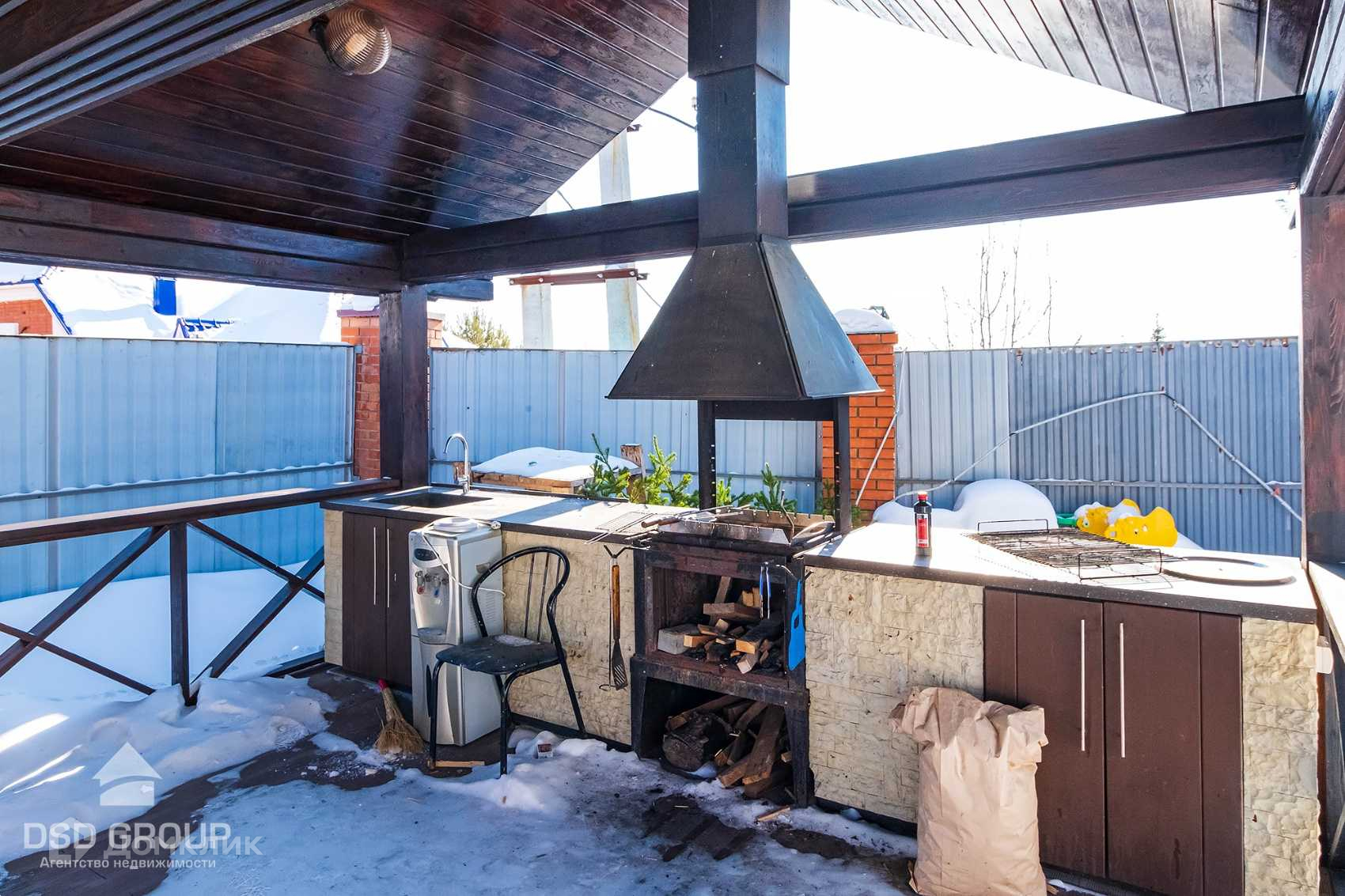 - Большая оборудованная беседка с мангальной зоной, так же изготовлена на заказ в Сибири из профилированного бруса сибирской сосны.