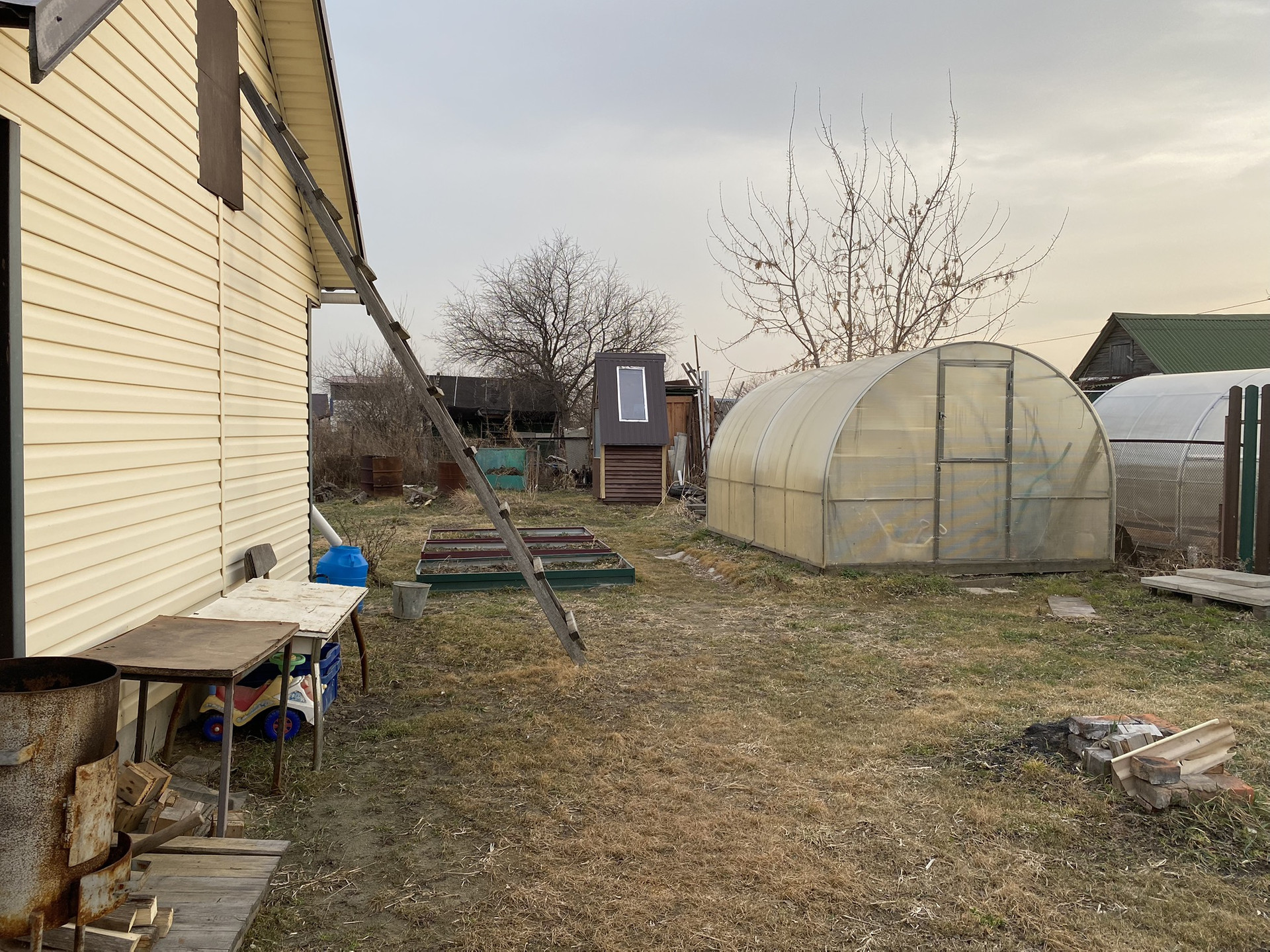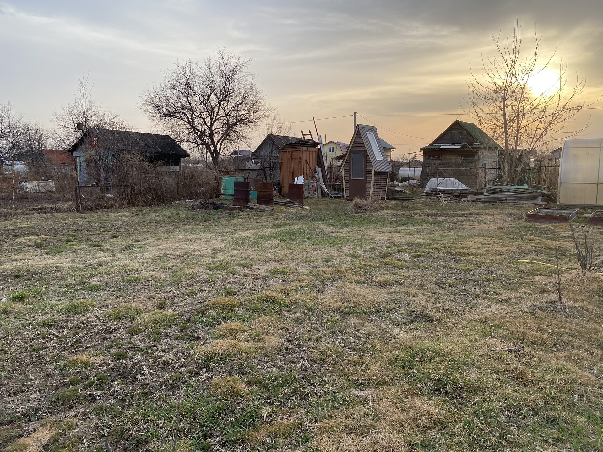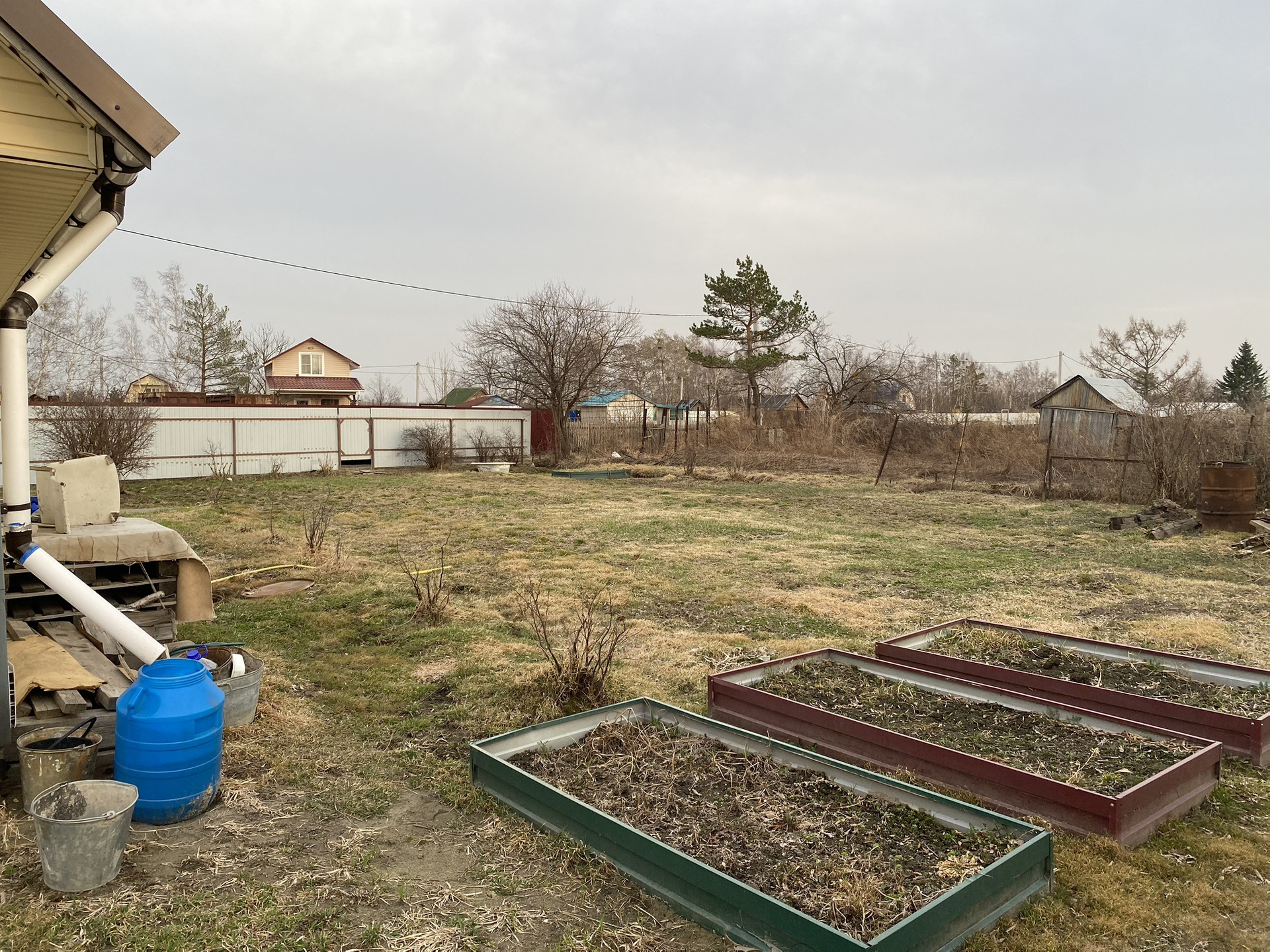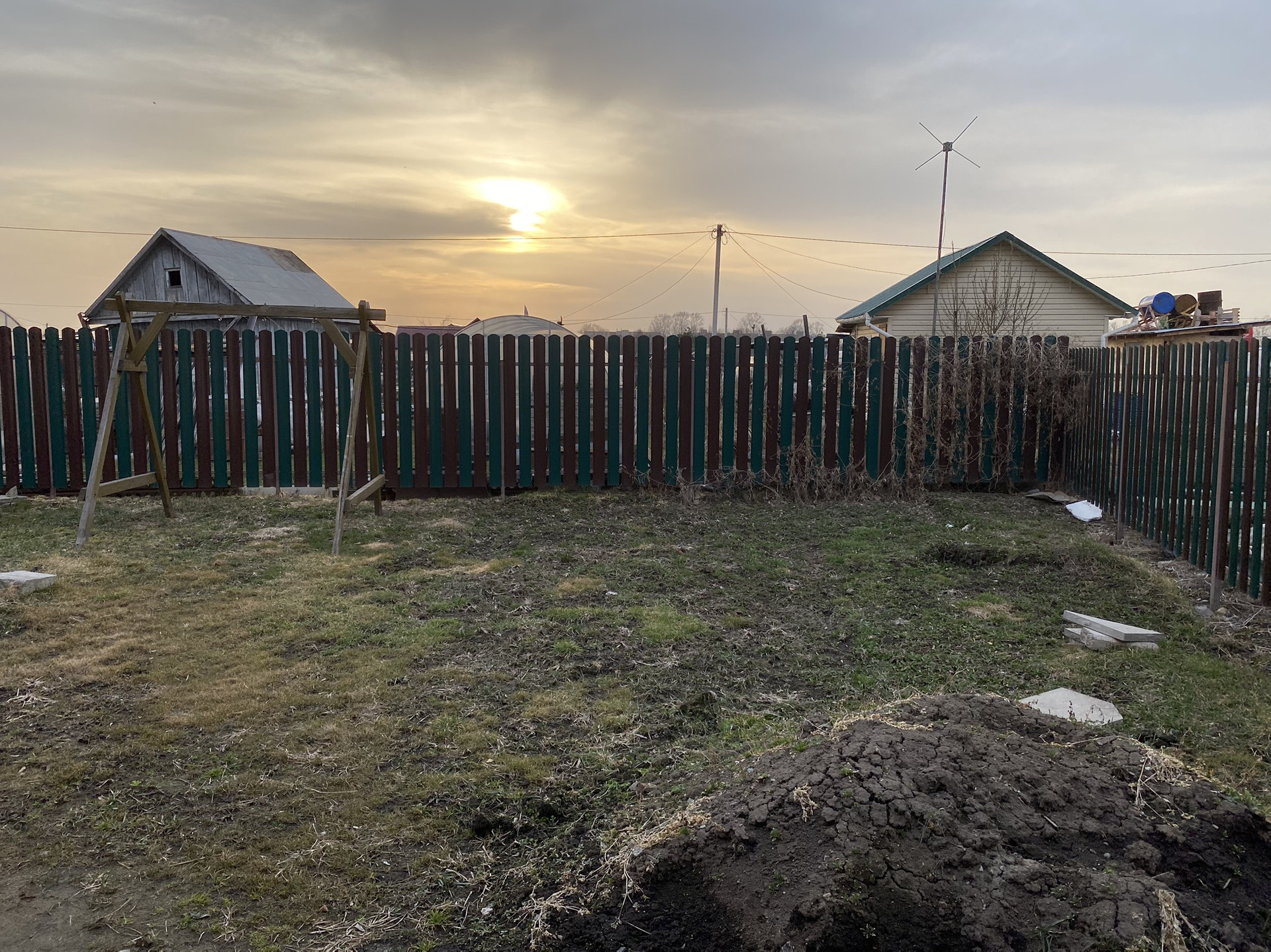 Земельный участок в хорошем состоянии, сухой и ровный, со стороны дороги огорожен профлистом, со стороны соседей – металлическим штакетником.
