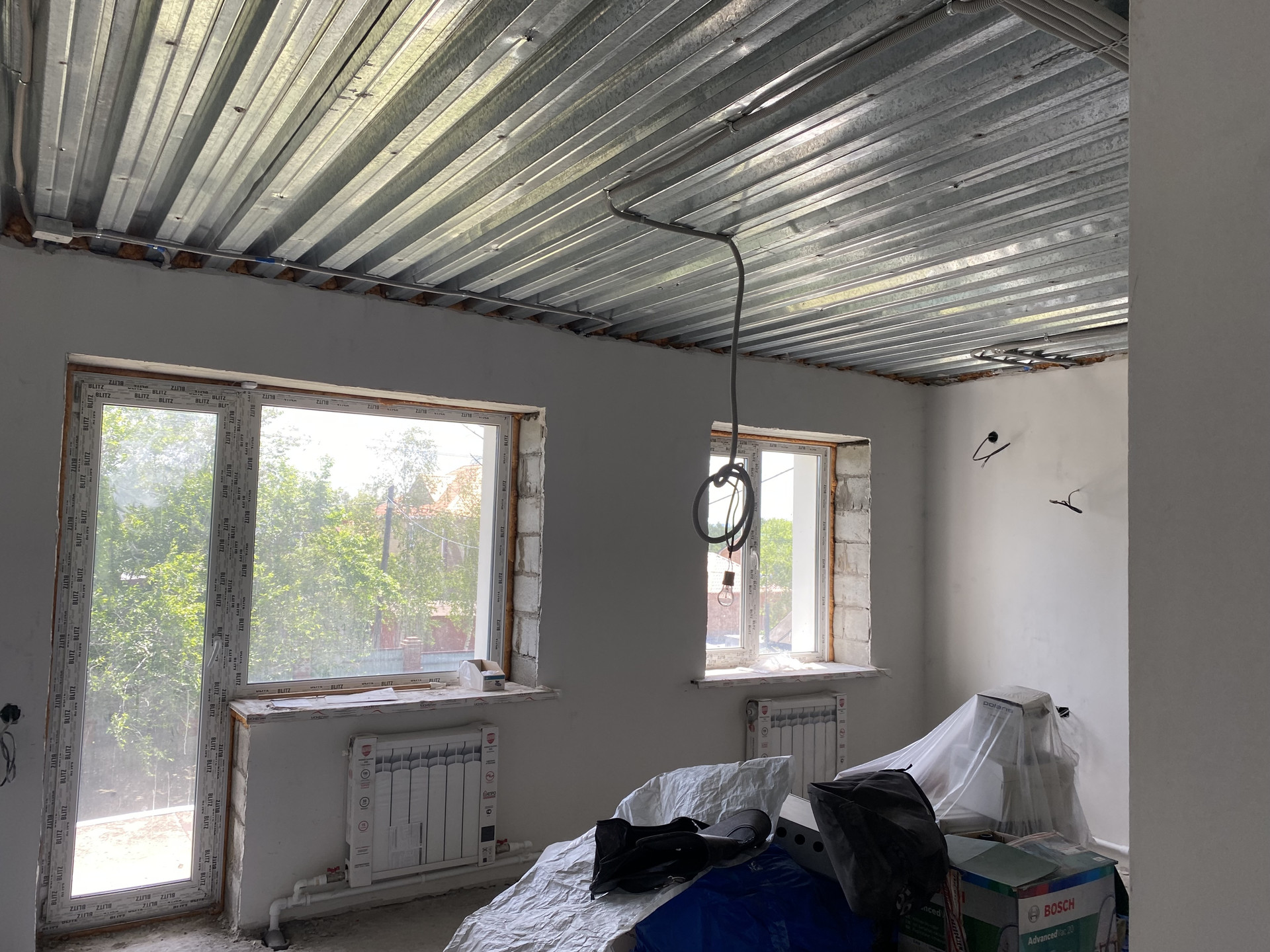 В доме чистовая отделка, стены идеально оштукатурены , полностью разведена электрическая проводка . Произведен монтаж электрических сетей.