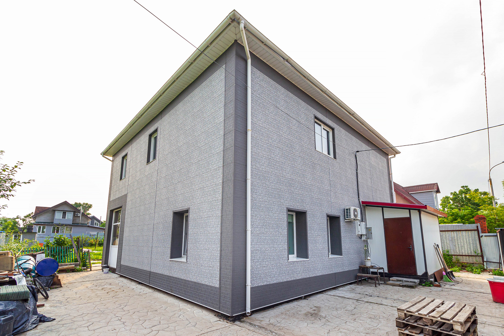 Дом двухэтажный общей площадью 176,5 м.кв. Построен на монолитном фундаменте.