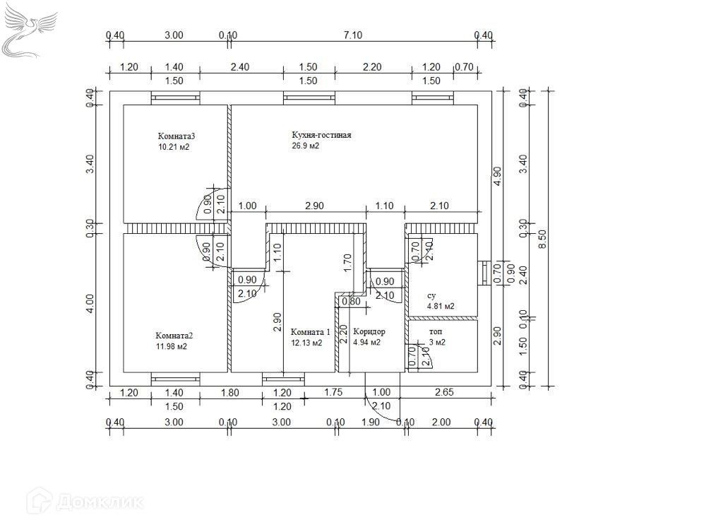 Количество комнат 3